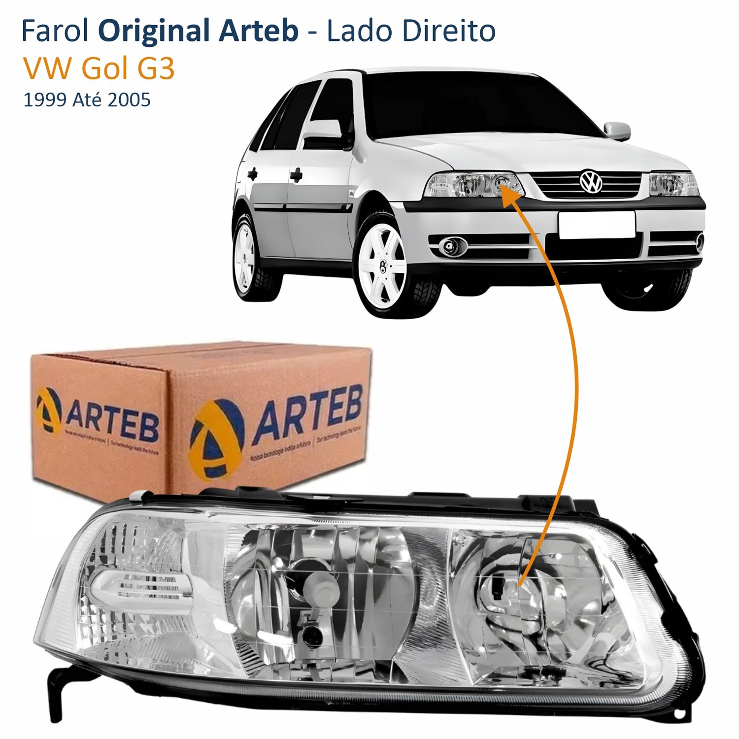 Farol VW Gol G3 1999 Até 2005 Foco Duplo Máscara Cromada ARTEB Lado Direito Passageiro
