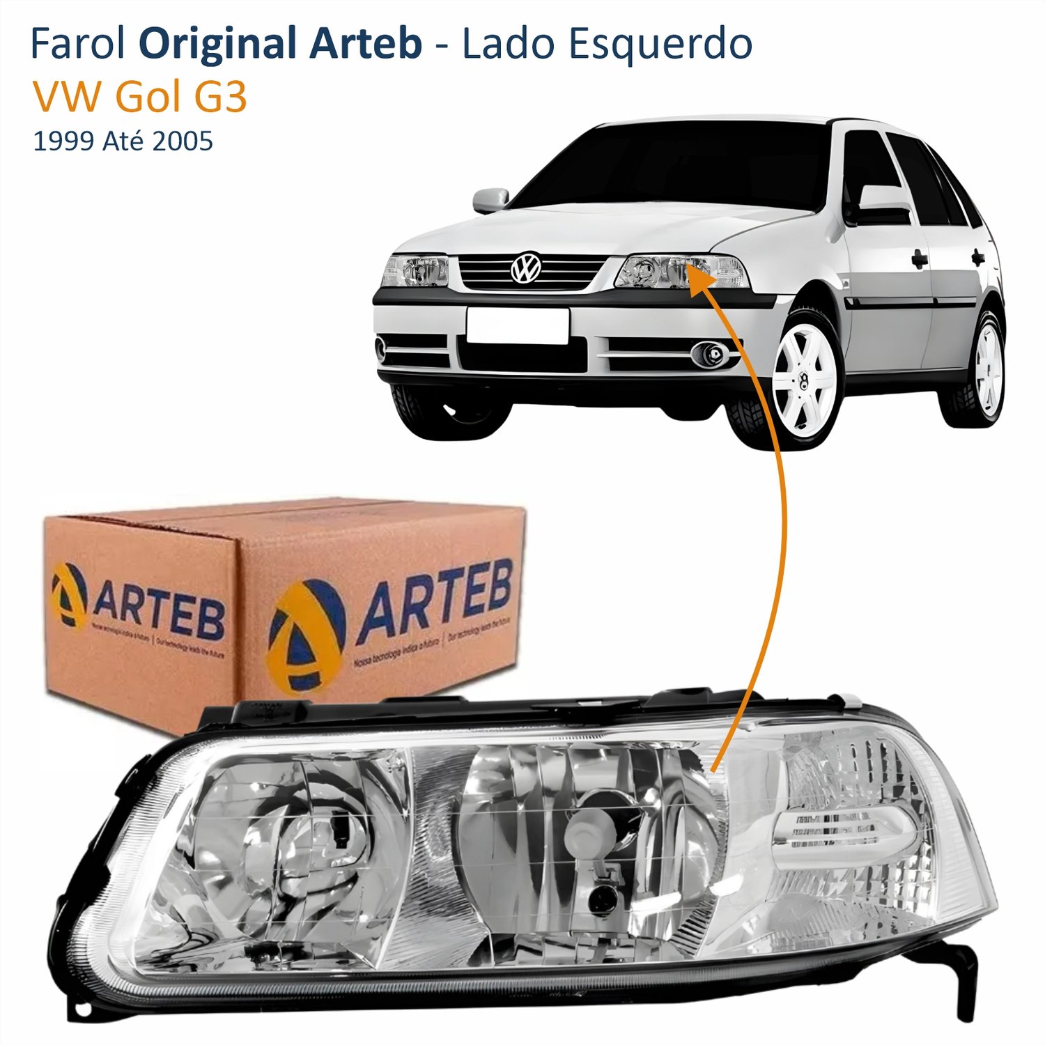 Farol VW Gol Saveiro Parati G3 1999 Até 2005 Foco Duplo Máscara Cromada ARTEB Lado Esquerdo Motorista Quant: 1x