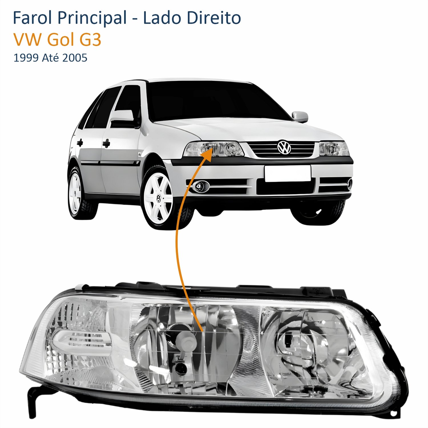 Farol VW Gol G3 1999 Até 2005 Foco Duplo Máscara Cromada Lado Direito Passageiro