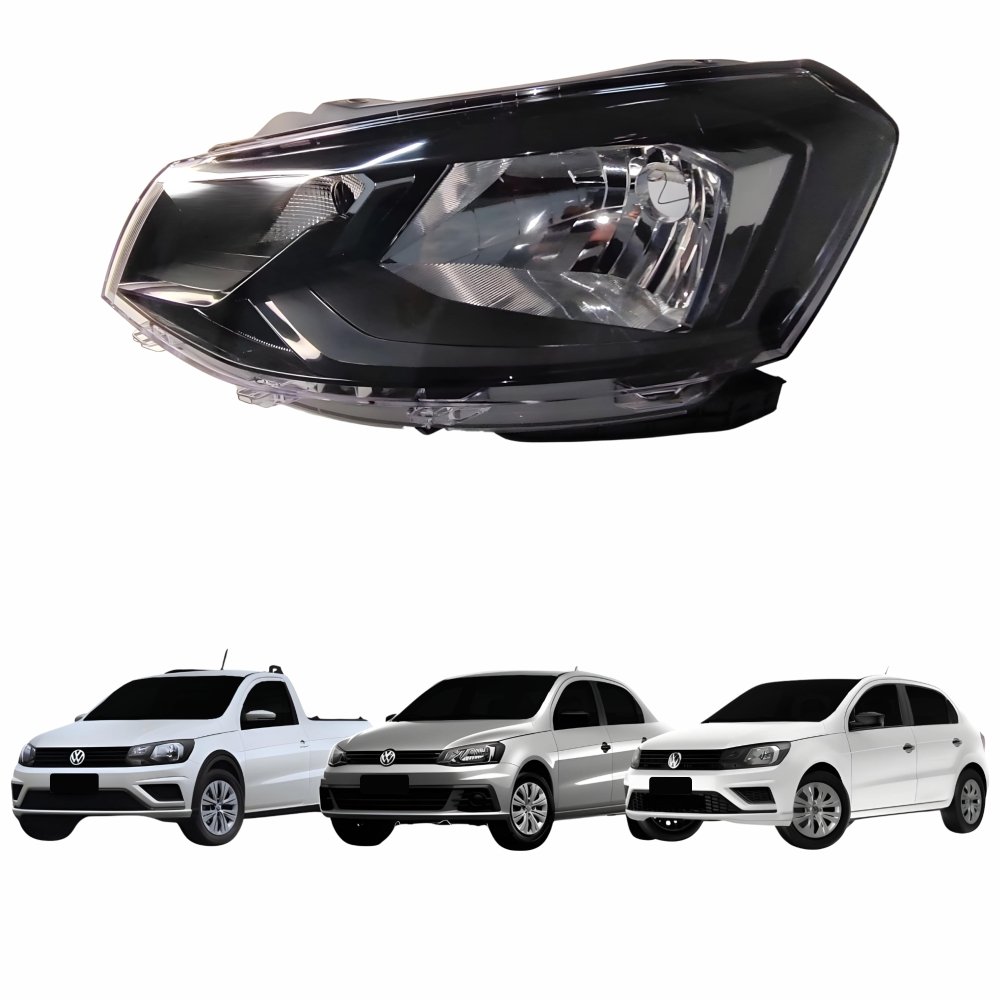 Farol Vw Gol G7 2016 Até 2018 Voyage G7 2017 Até 2018 Saveiro G7 2018 Até 2020 Foco Simples Friso Preto Lado Esquerdo Motorista
