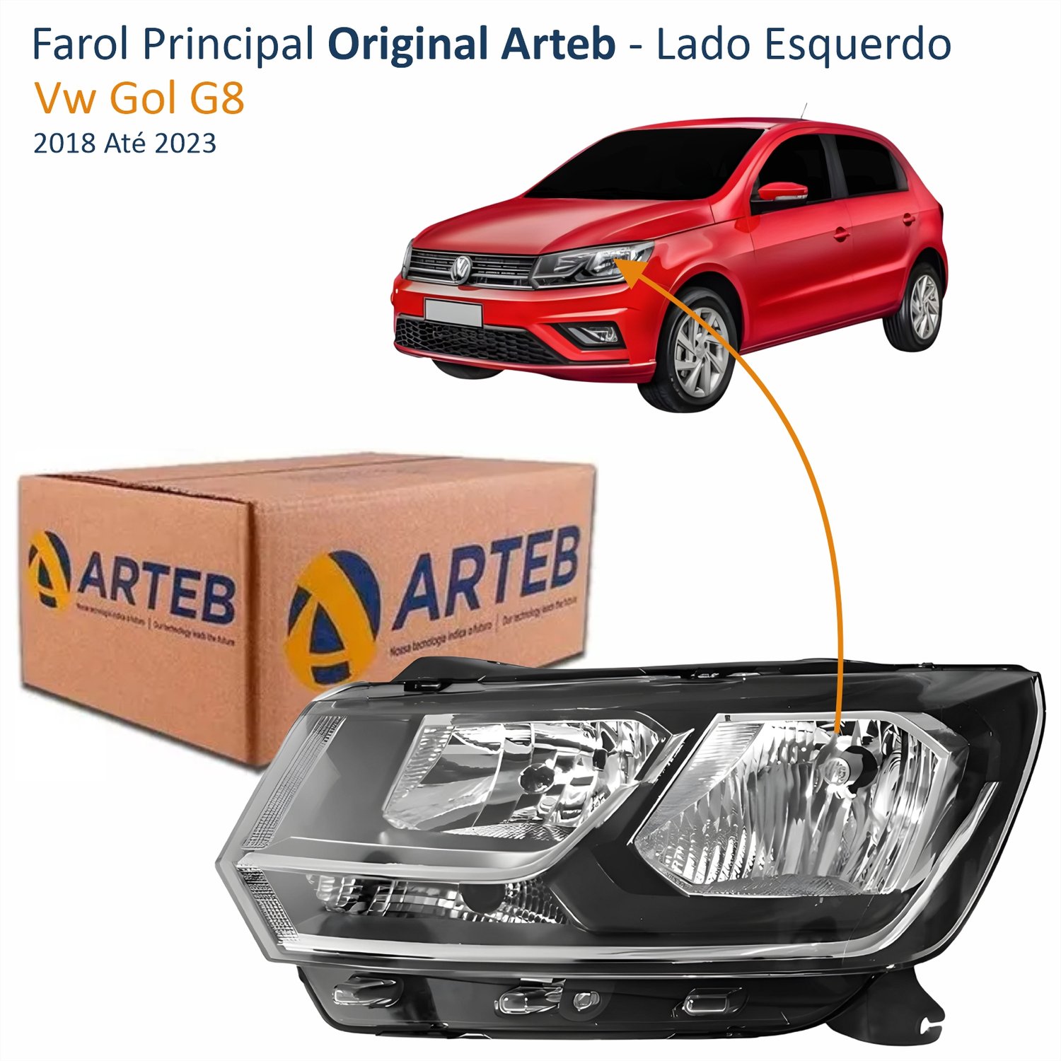 Farol Vw Gol G8 2018 Até 2023 Original Arteb Foco Duplo Lado Esquerdo Motorista