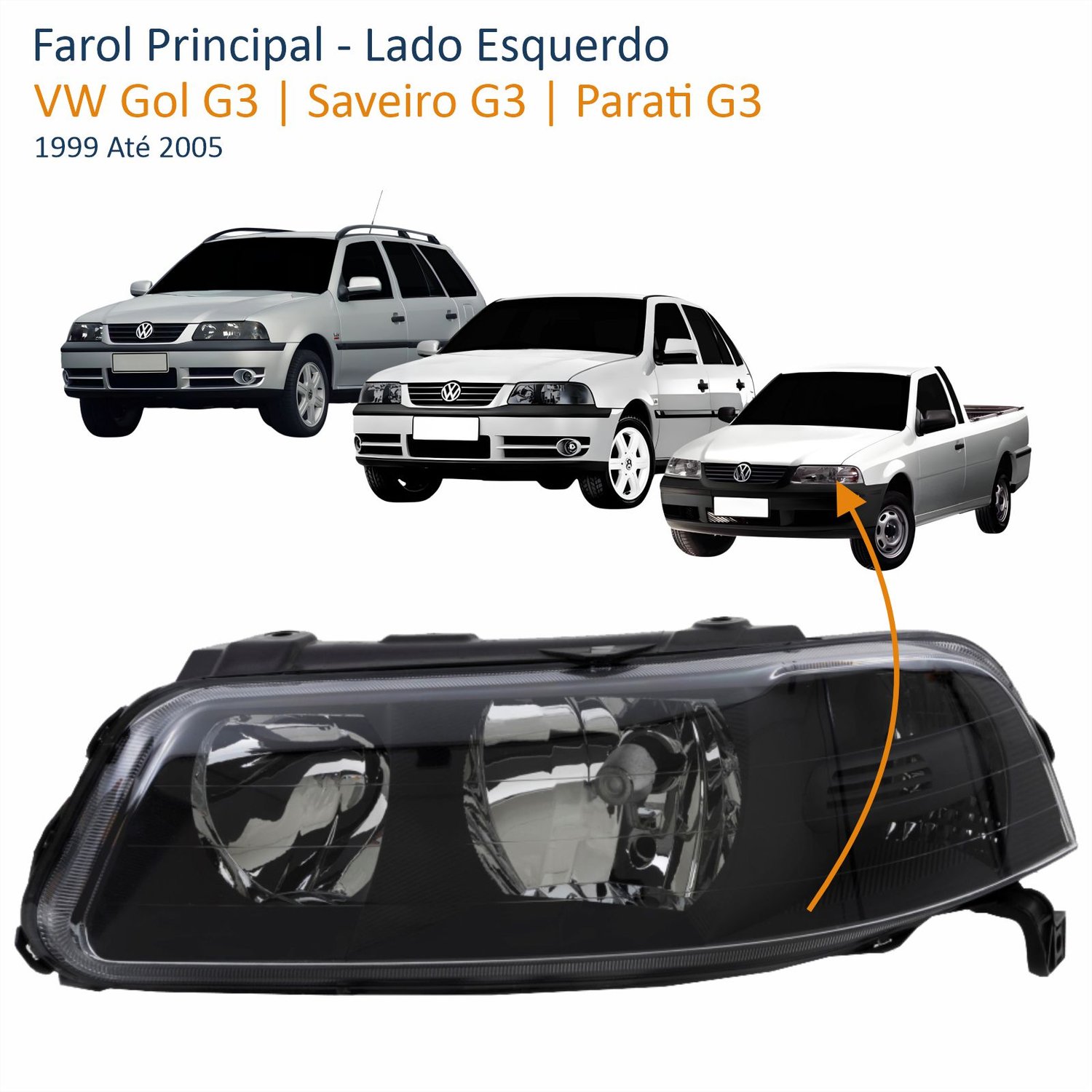 Farol VW Gol Saveiro Parati G3 1999 Até 2005 Foco Duplo Máscara Negra Lado Esquerdo Motorista
