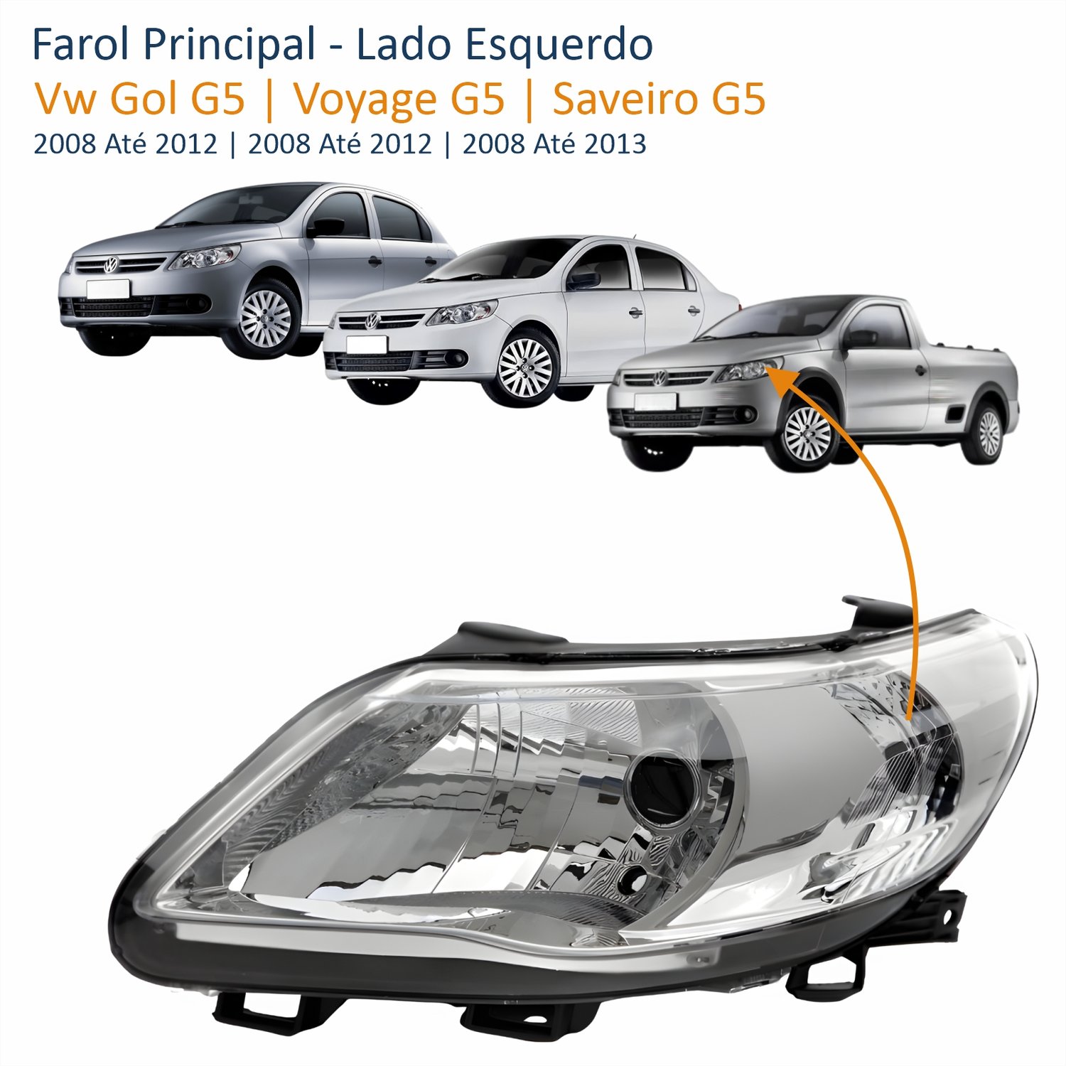 Farol Vw Gol Voyage G5 2008 Até 2012 Saveiro G5 2008 Até 2013 Máscara Cromada Lado Esquerdo Motorista