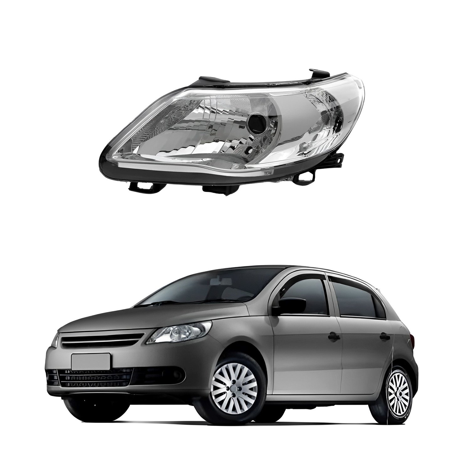 Farol VW Gol Voyage G5 2009 Até 2012 Saveiro G5 2009 Até 2013 Foco Simples Cromada Lado Esquerdo Motorista