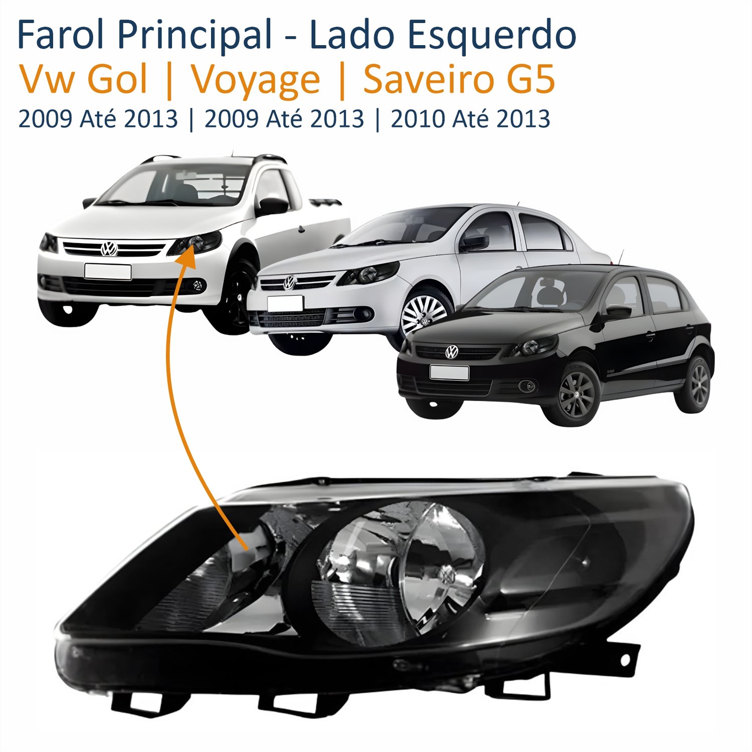 Farol Vw Gol Voyage G5 2009 Até 2013 Saveiro G5 2010 Até 2013 Máscara Negra Lado Esquerdo Motorista