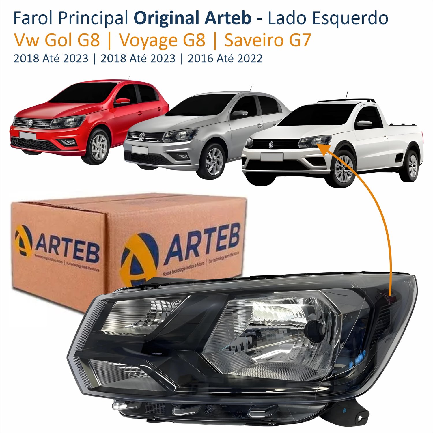 Farol Vw Gol Voyage G8 2018 Até 2023 Saveiro G7 2016 Até 2022 Original Arteb Lado Esquerdo Motorista