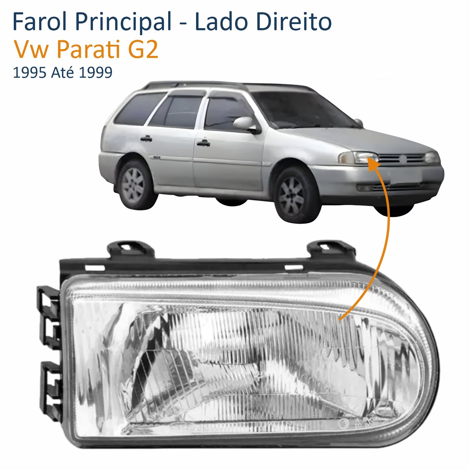 Farol Vw Parati G2 1995 Até 1999 Foco Simples Máscara Cromada Lado Direito Passageiro