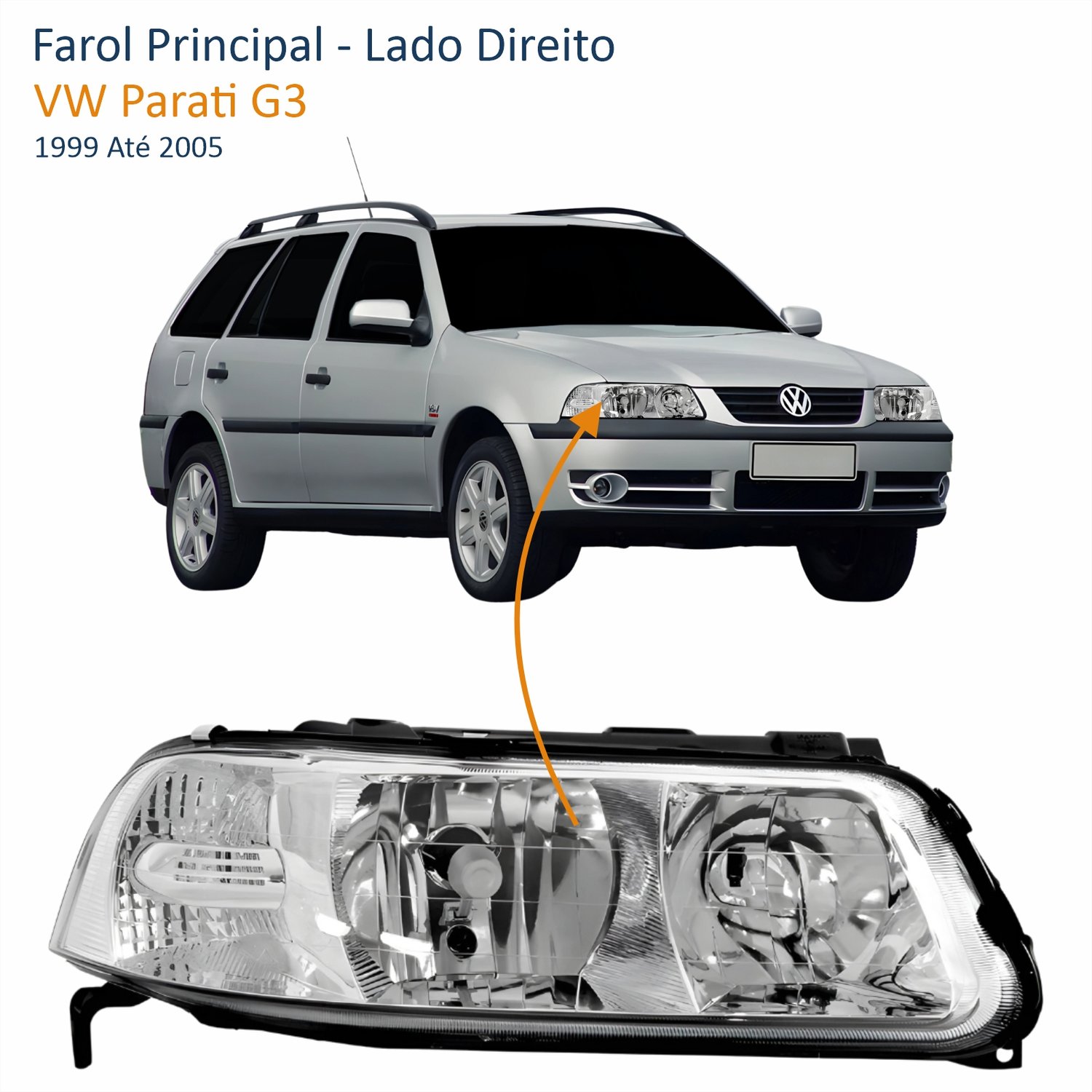 Farol VW Parati G3 1999 Até 2005 Foco Duplo Máscara Cromada Lado Direito Passageiro