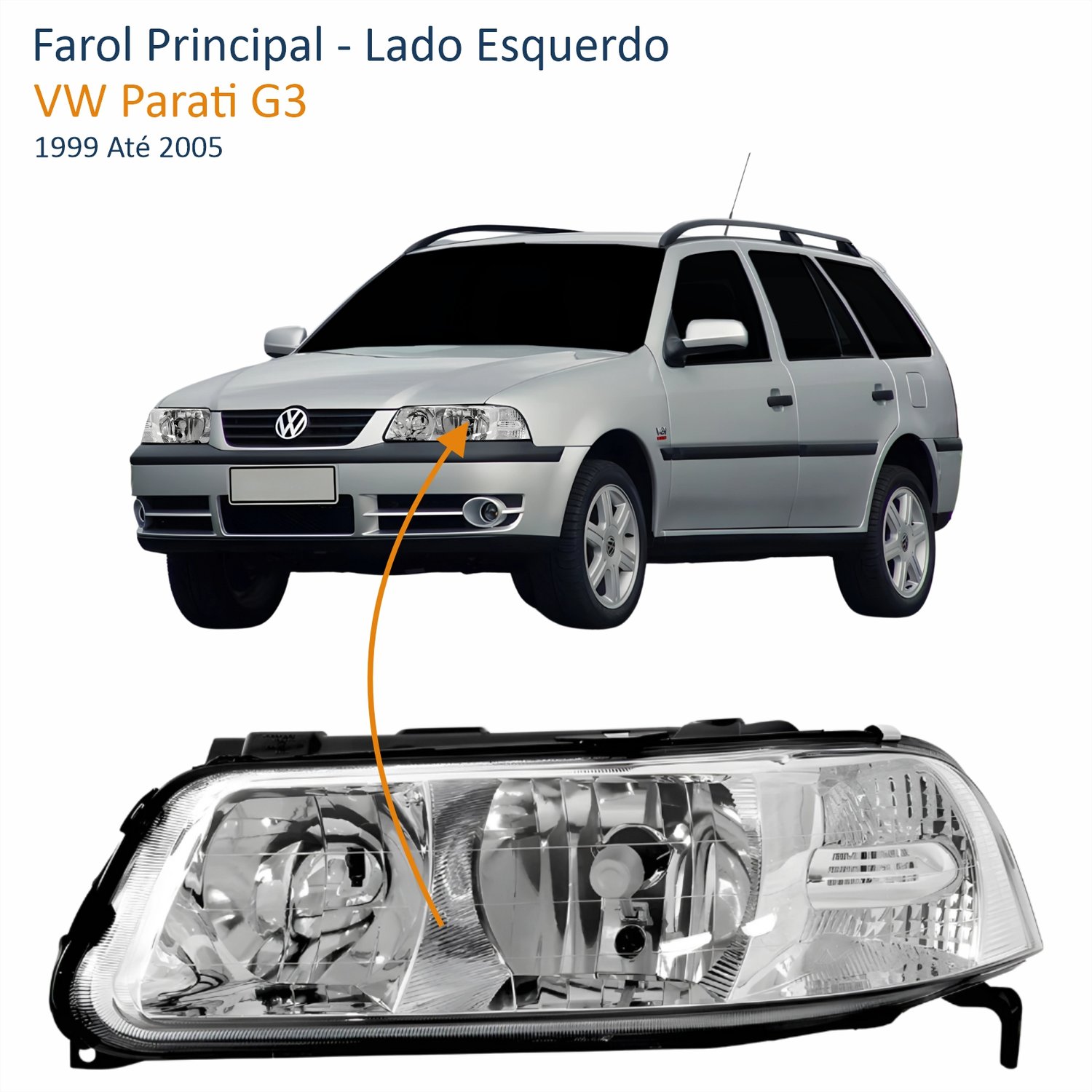 Farol VW Parati G3 1999 Até 2005 Foco Duplo Máscara Cromada Lado Esquerdo Motorista