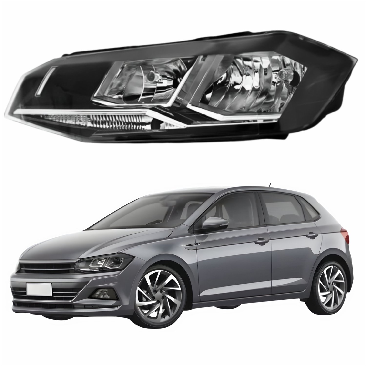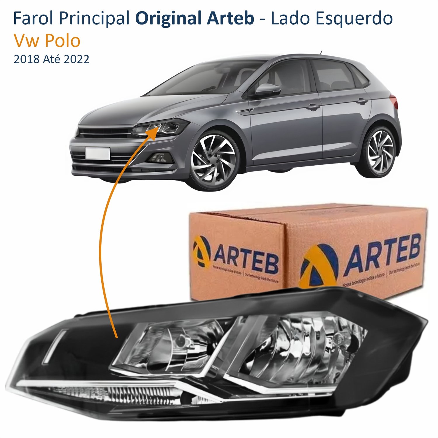 Farol Vw Polo 2018 Até 2022 Original Arteb Máscara Negra Com Friso Cromado Lado Esquerdo Motorista