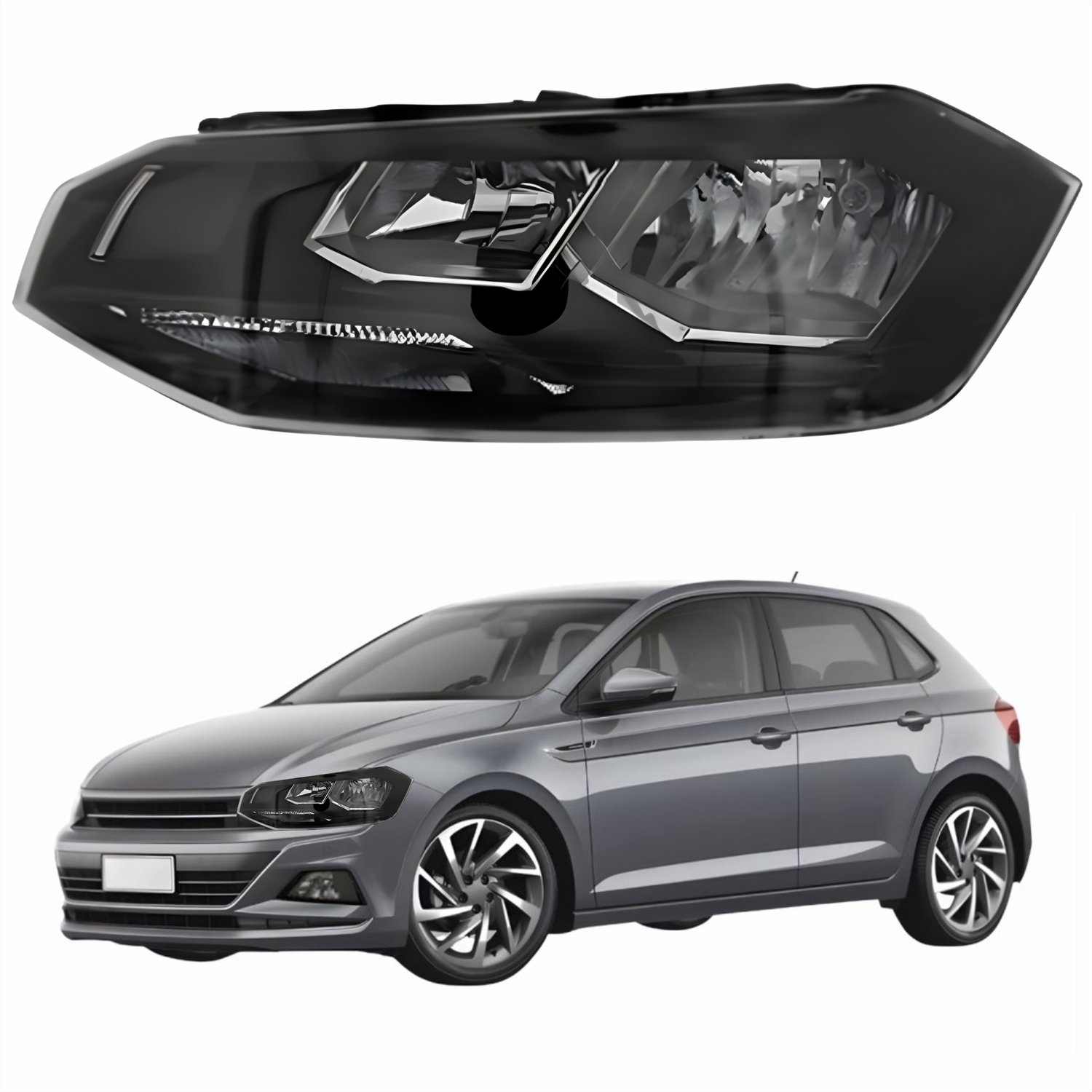 Farol Vw Polo 2018 Até 2022 Original Arteb Máscara Negra Com Friso Preto Lado Esquerdo Motorista
