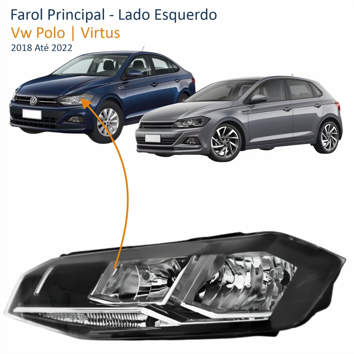 Farol Vw Polo Virtus 2018 Até 2022 Máscara Negra Com Friso Cromado Lado Esquerdo Motorista