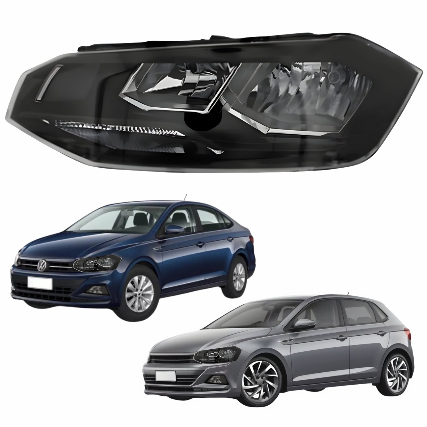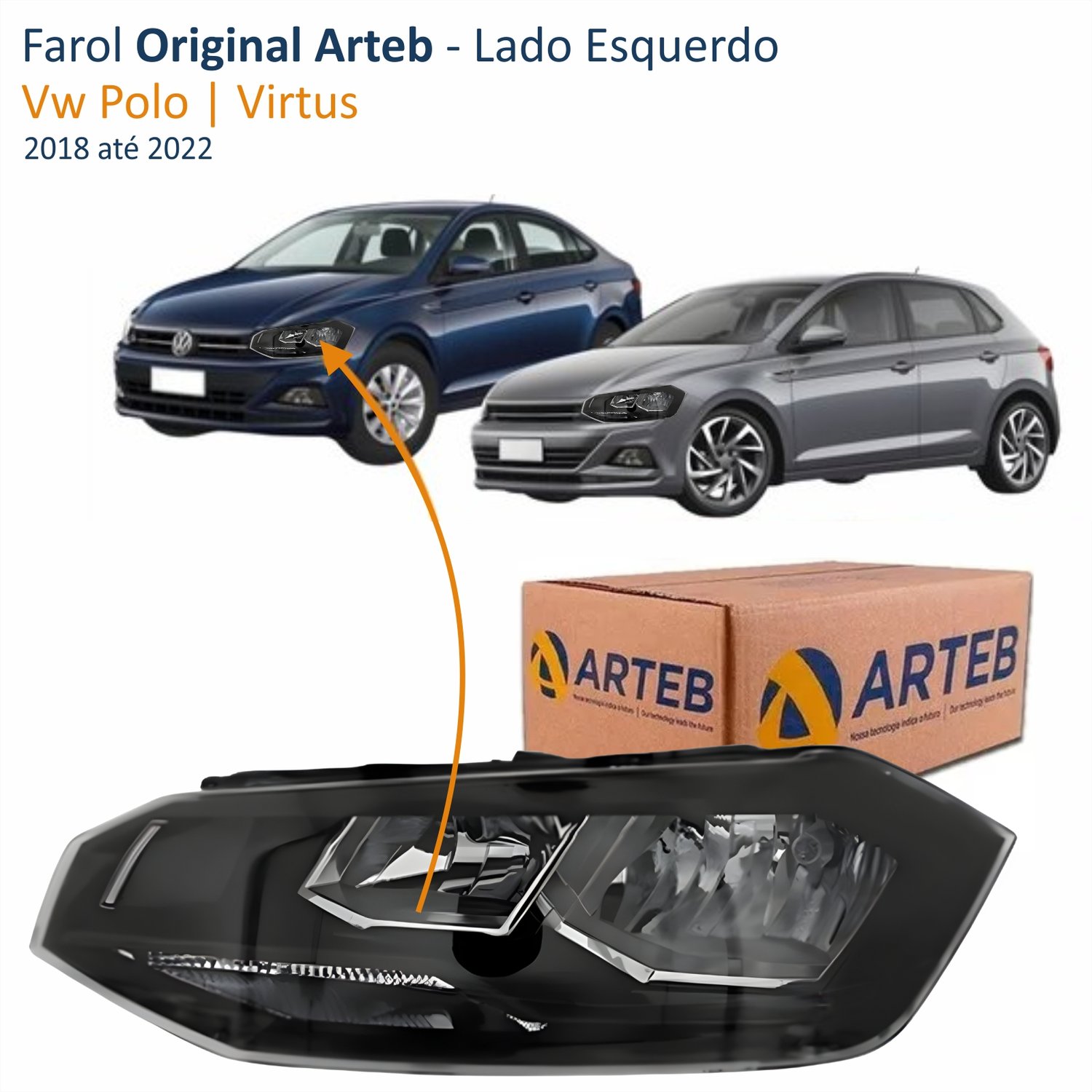 Farol Vw Polo Virtus 2018 Até 2022 Original Arteb Máscara Negra Com Friso Preto Lado Esquerdo Motorista