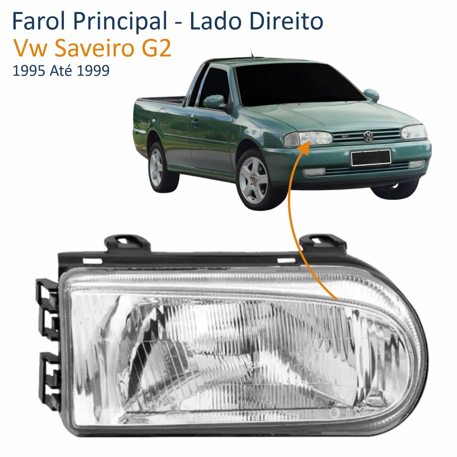 Farol Vw Saveiro G2 1995 Até 1999 Foco Simples Máscara Cromada Lado Direito Passageiro
