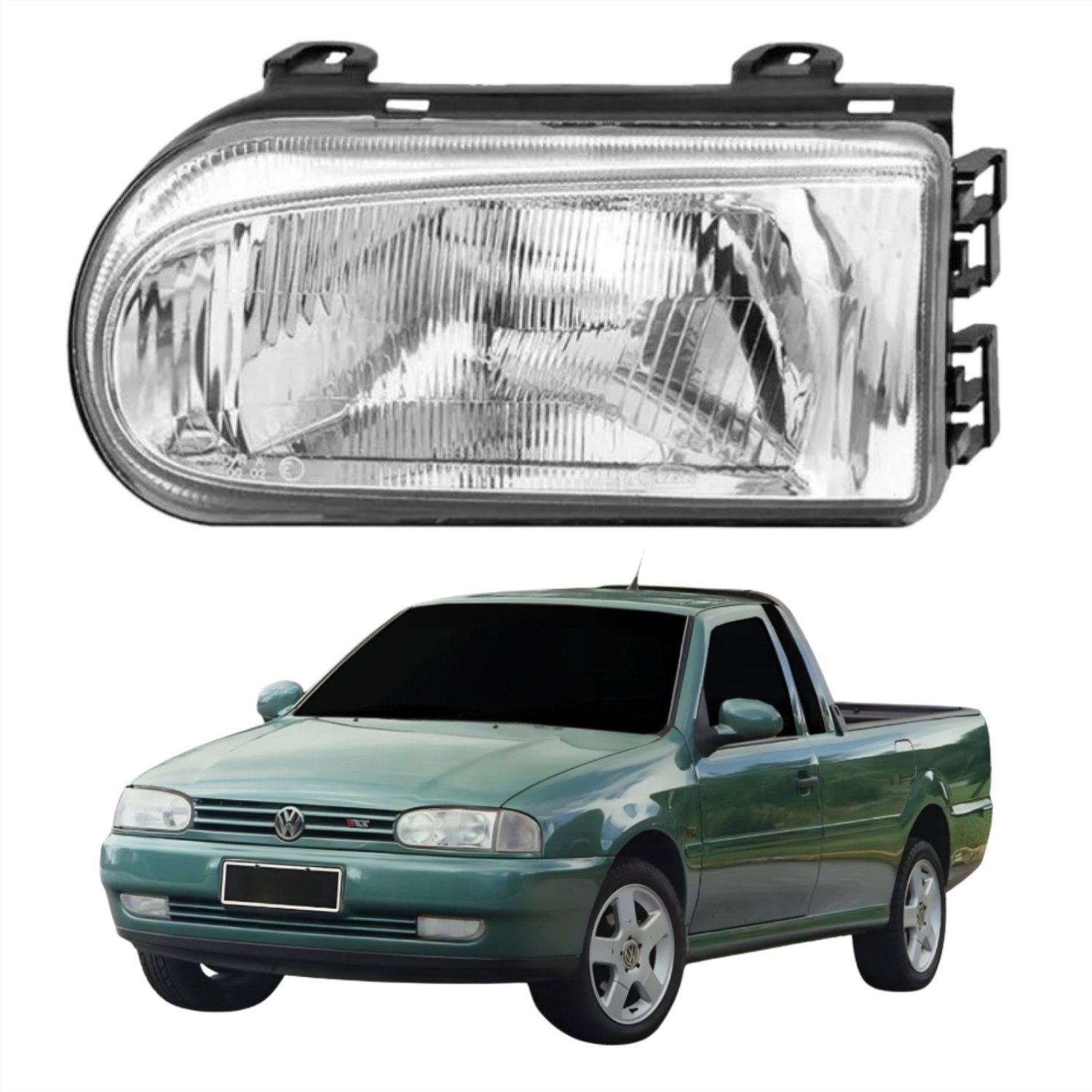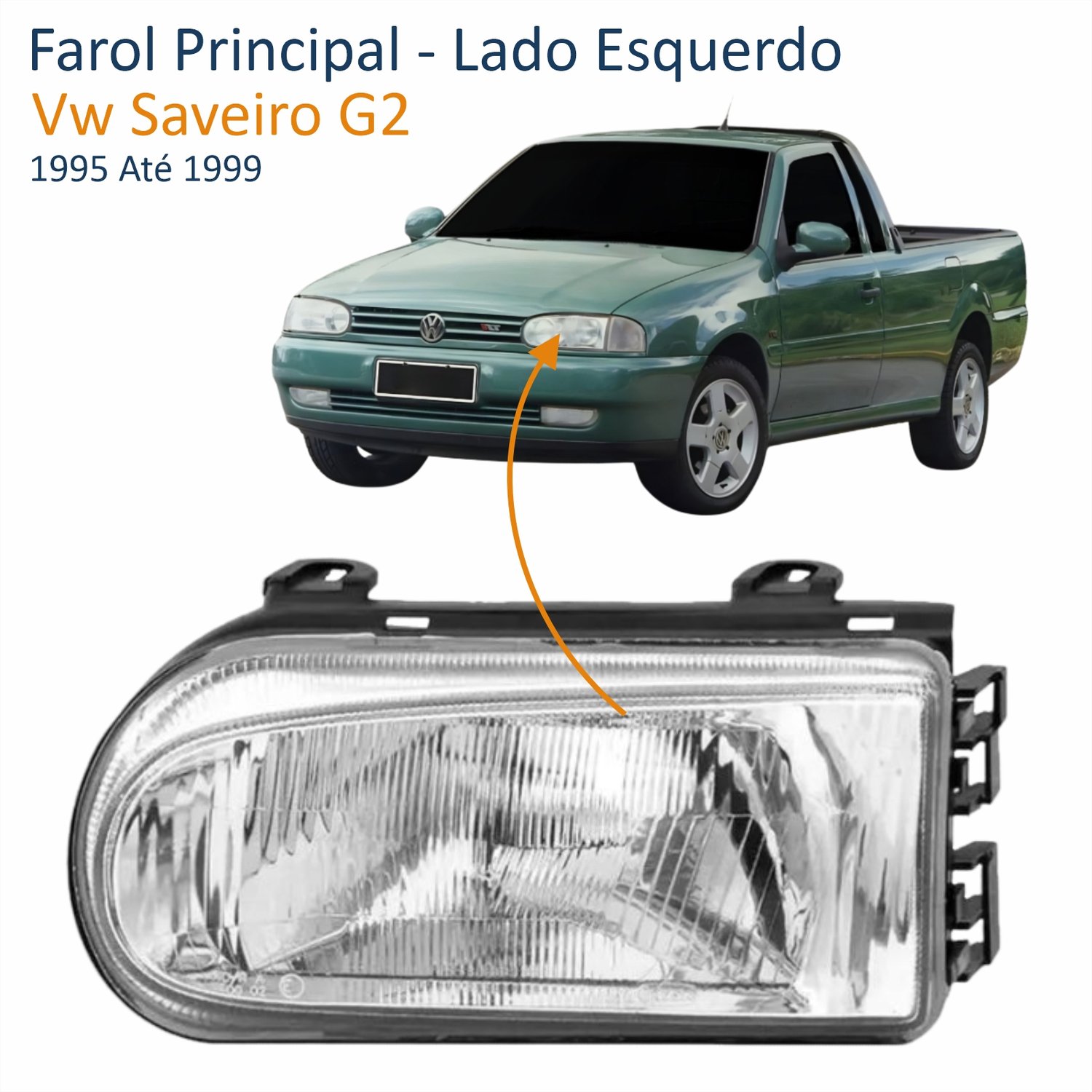 Farol Vw Saveiro G2 1995 Até 1999 Foco Simples Máscara Cromada Lado Esquerdo Motorista