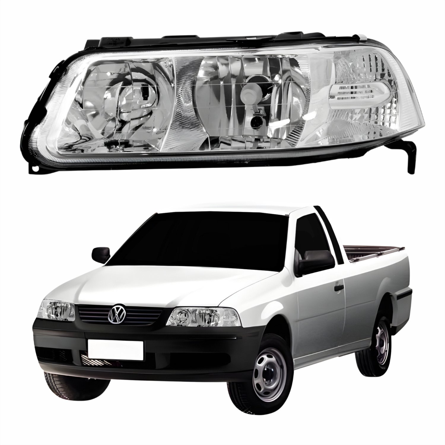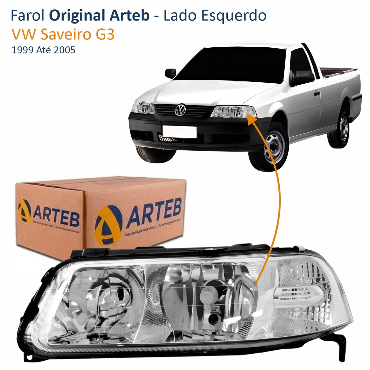 Farol VW Saveiro G3 1999 Até 2005 Foco Duplo Máscara Cromada ARTEB Lado Esquerdo Motorista