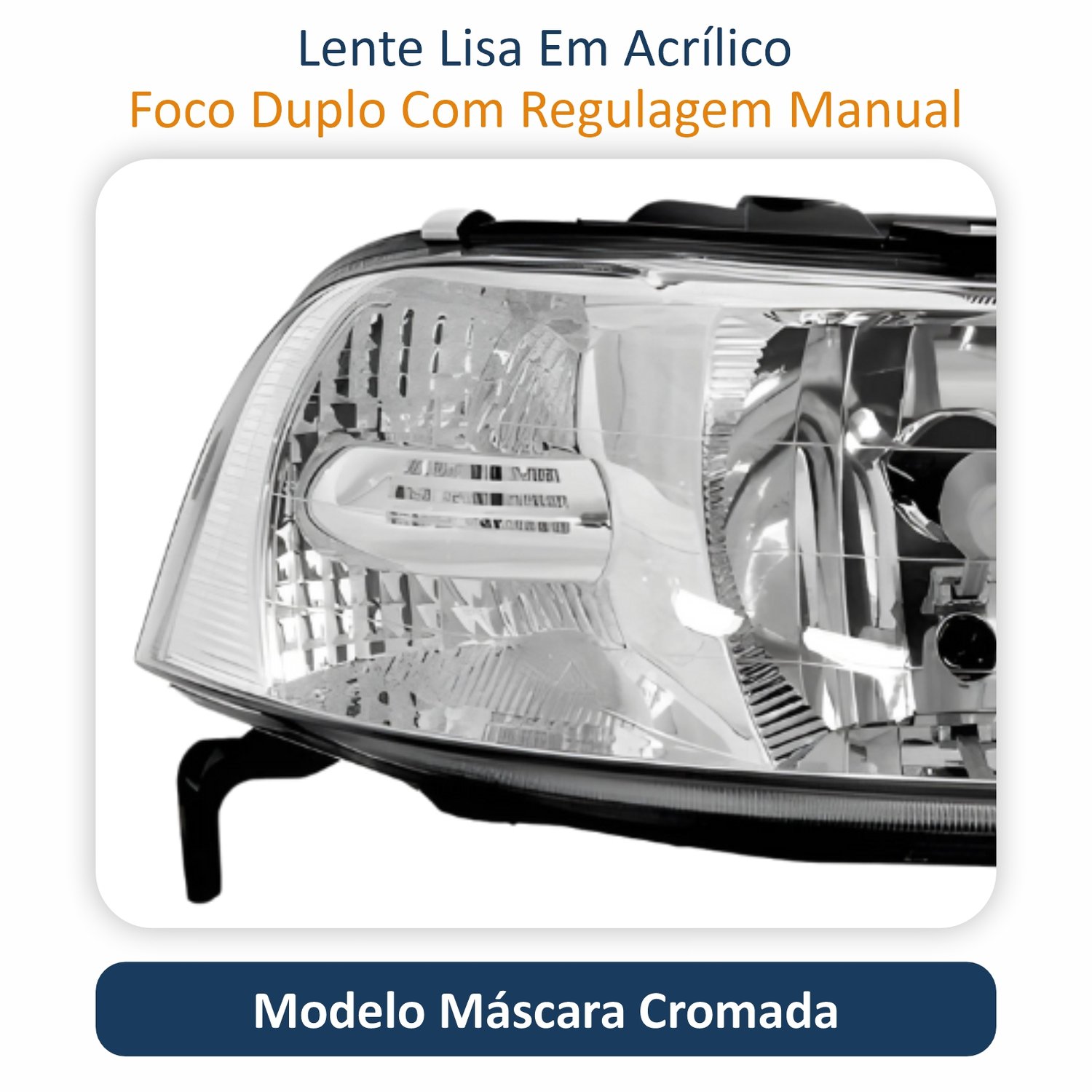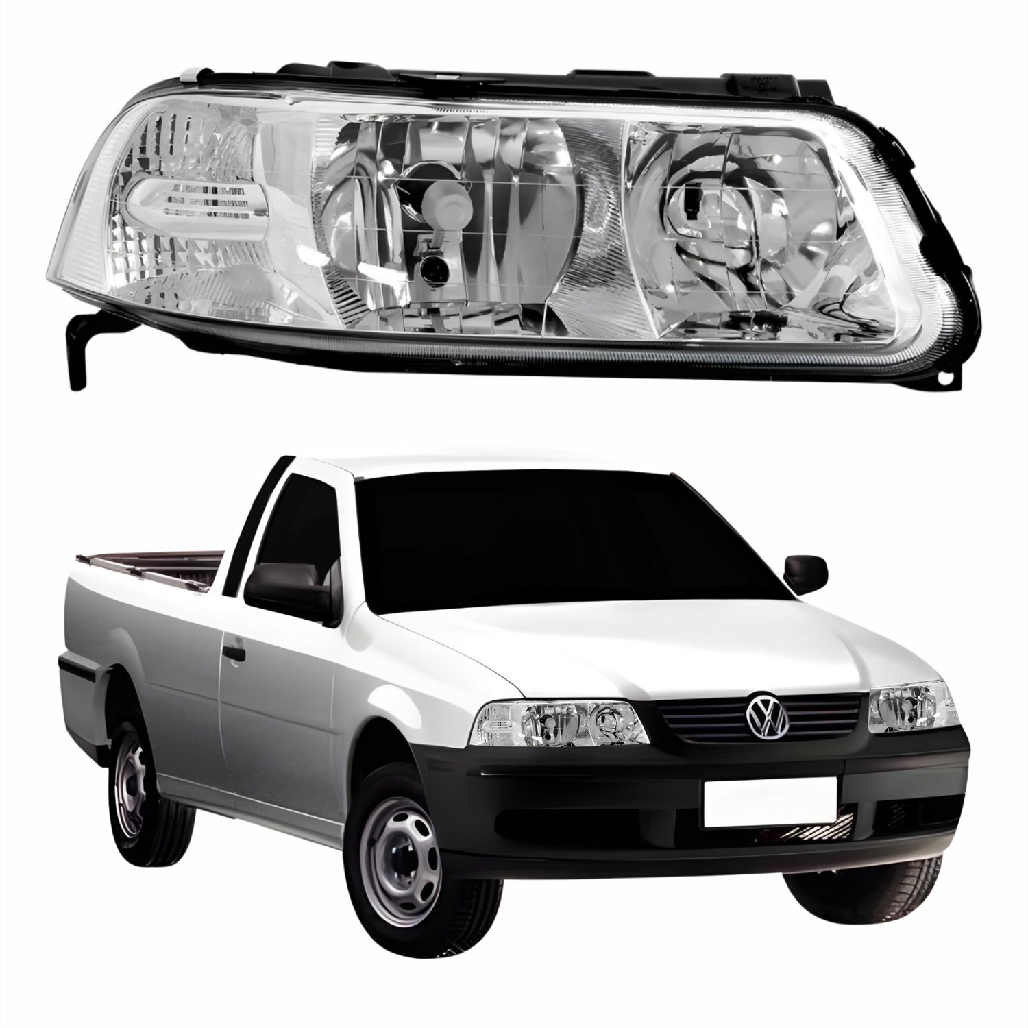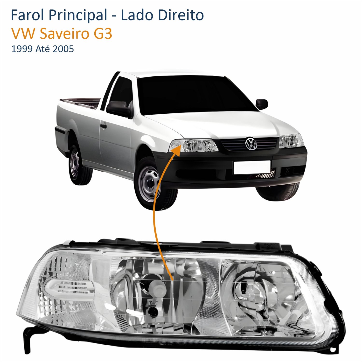 Farol VW Saveiro G3 1999 Até 2005 Foco Duplo Máscara Cromada Lado Direito Passageiro
