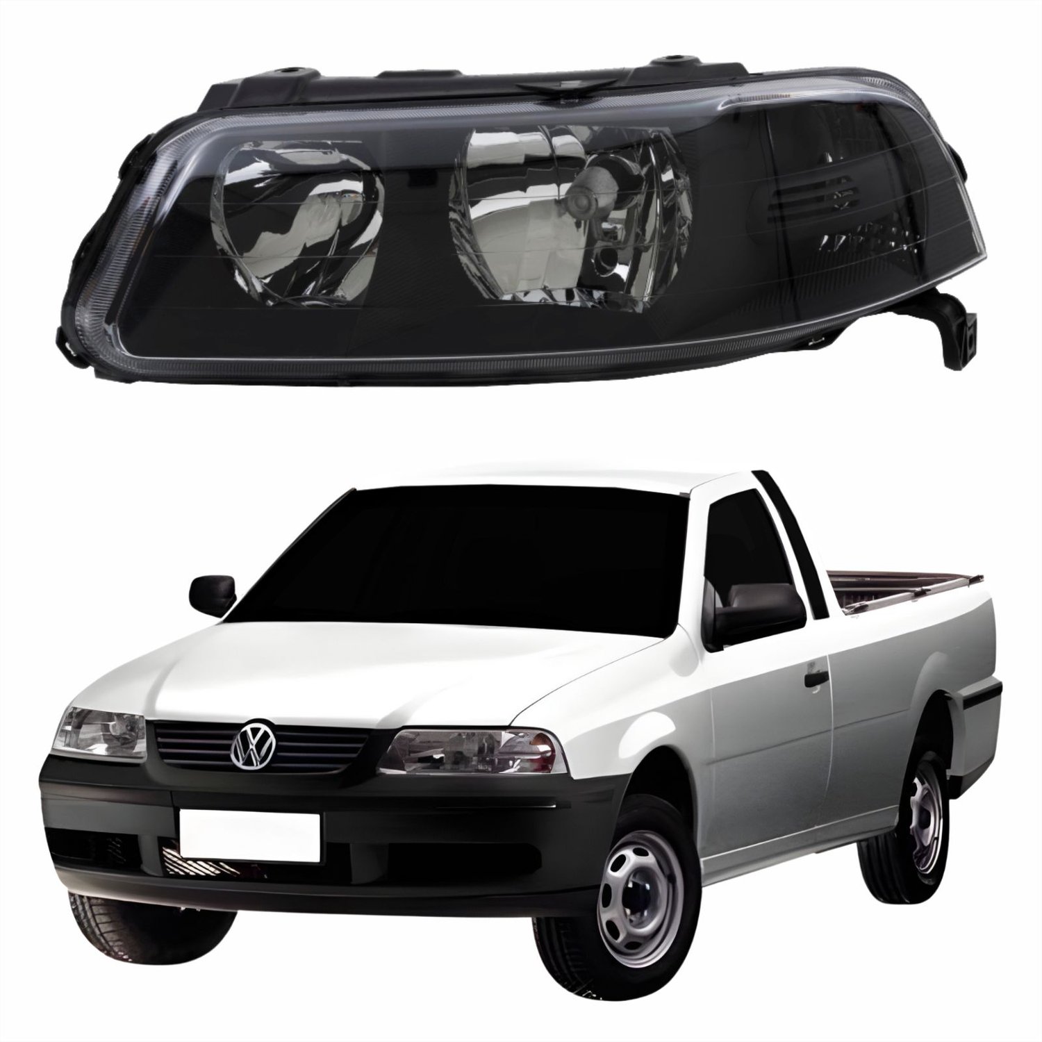 Farol VW Saveiro G3 1999 Até 2005 Foco Duplo Máscara Negra Lado Esquerdo Motorista