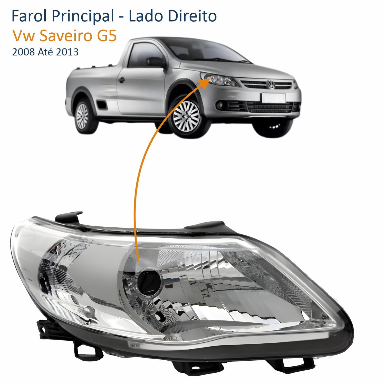 Farol Vw Gol Voyage G5 2008 Até 2012 Saveiro G5 2008 Até 2013 Máscara Cromada Lado Direito PassageiroTamanho: Único