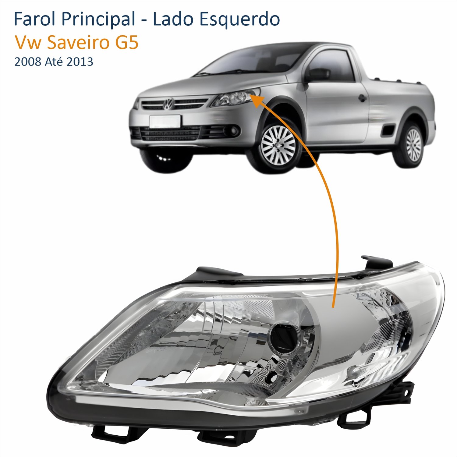 Farol Vw Gol Voyage G5 2008 Até 2012 Saveiro G5 2008 Até 2013 Máscara Cromada Lado Esquerdo MotoristaTamanho: Único