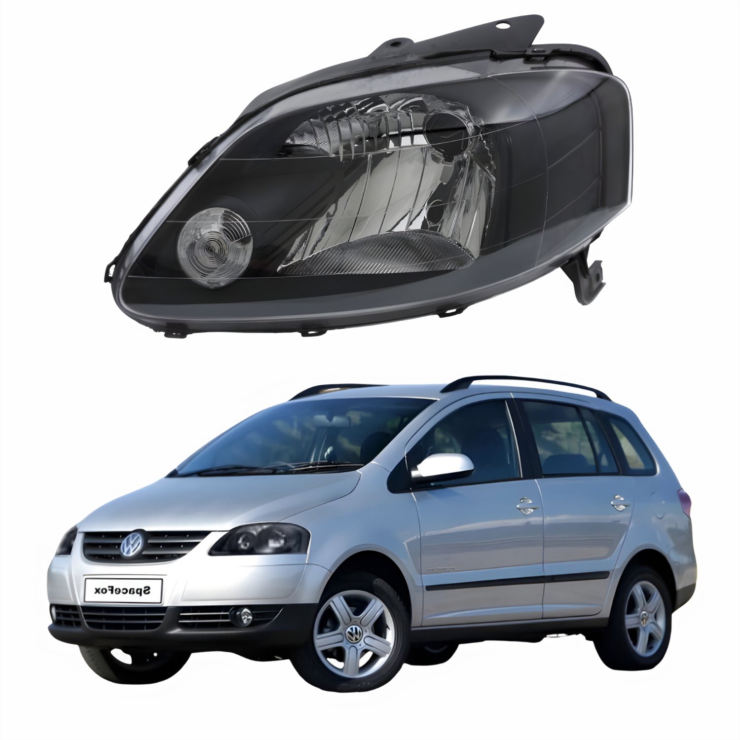 Farol Vw Spacefox 2005 Até 2009 Máscara Negra Lado Esquerdo Motorista