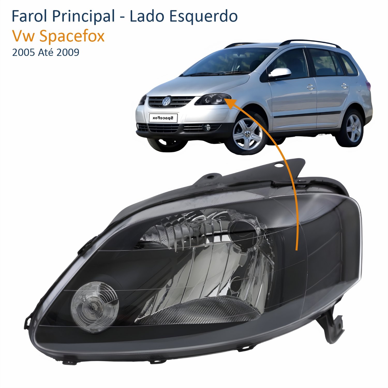 Farol Vw Fox 2003 Até 2009 Crossfox 2005 Até 2010 Spacefox 2005 Até 2009 Máscara Negra Lado Esquerdo MotoristaTamanho: Único