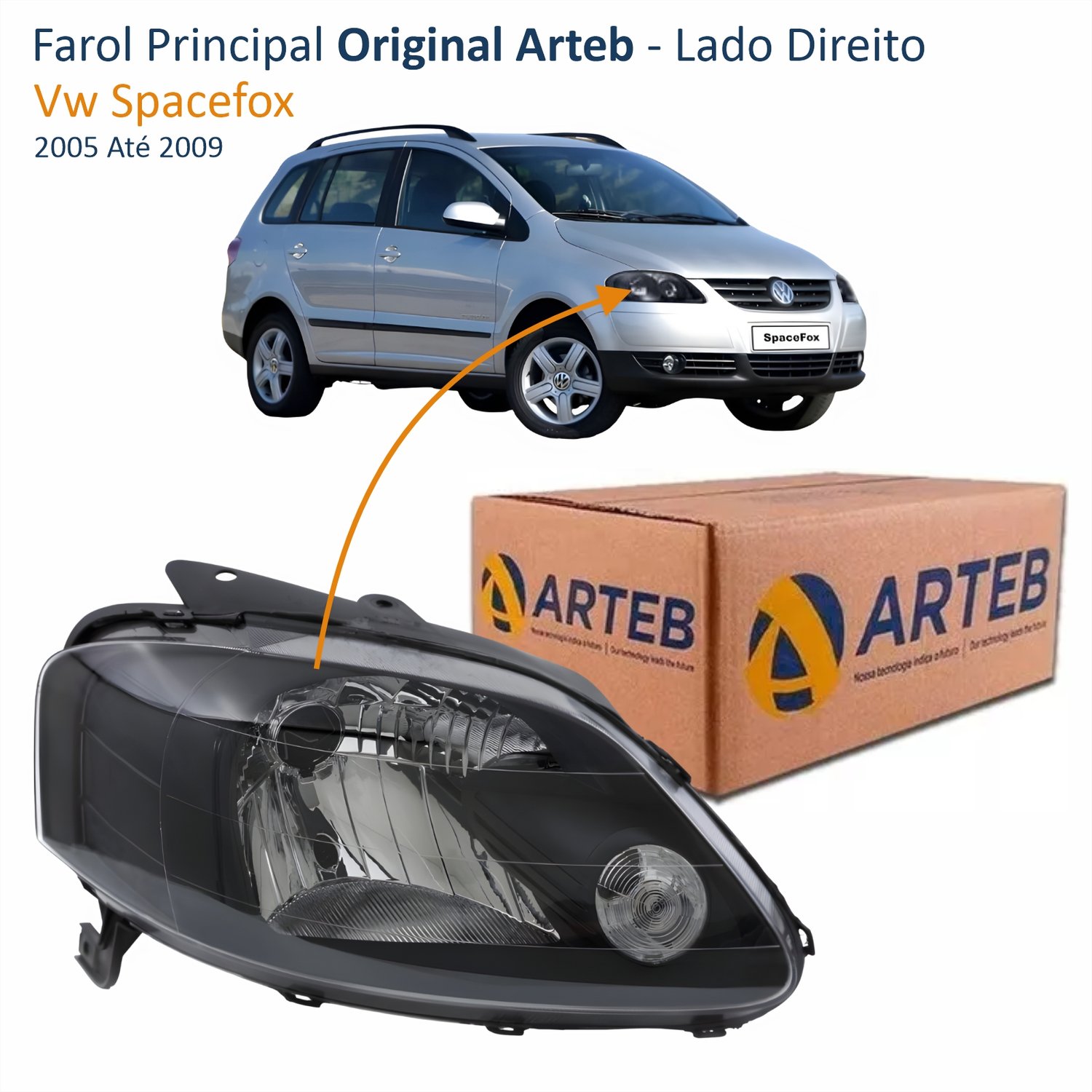 Farol Vw Spacefox 2005 Até 2009 Original Arteb Máscara Negra Lado Direito Passageiro