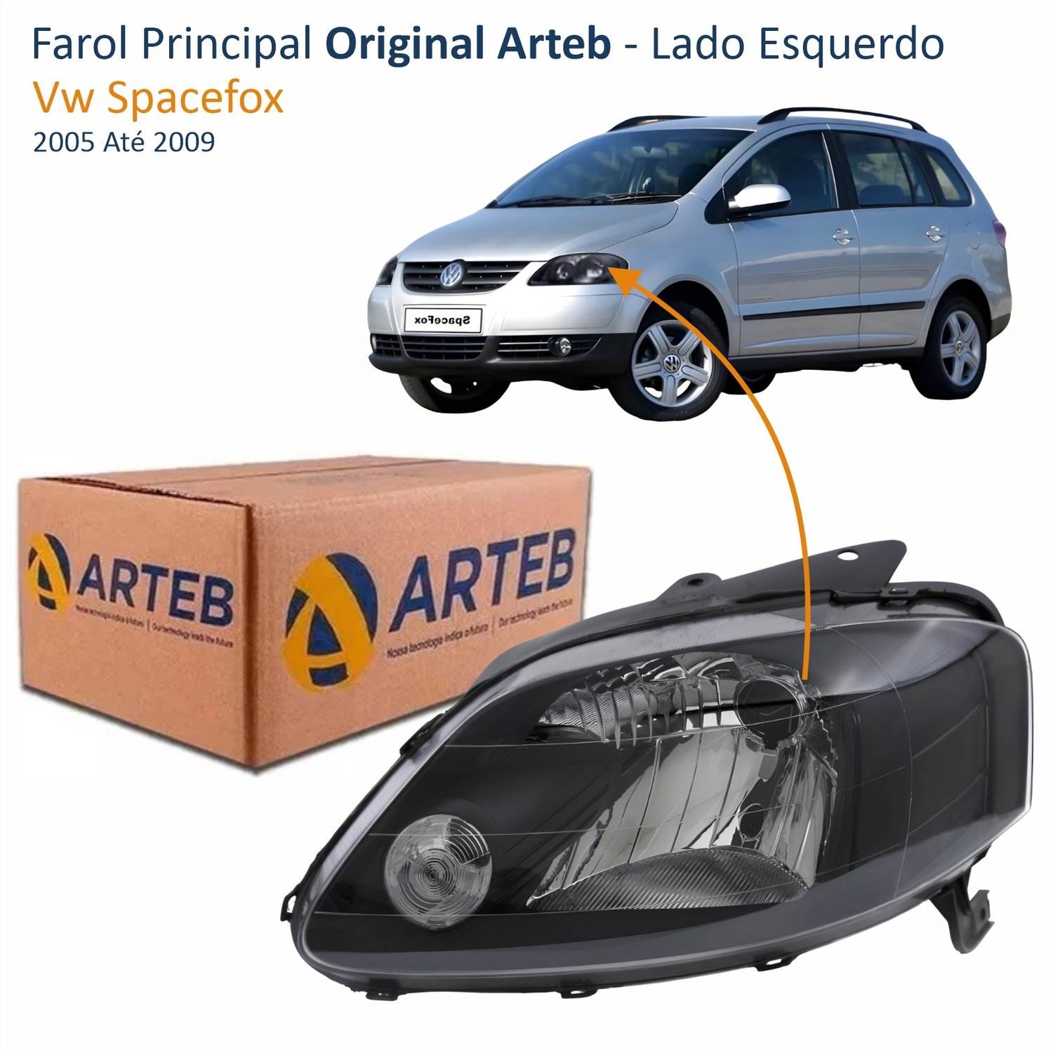 Farol Vw Spacefox 2005 Até 2009 Original Arteb Máscara Negra Lado Esquerdo Motorista