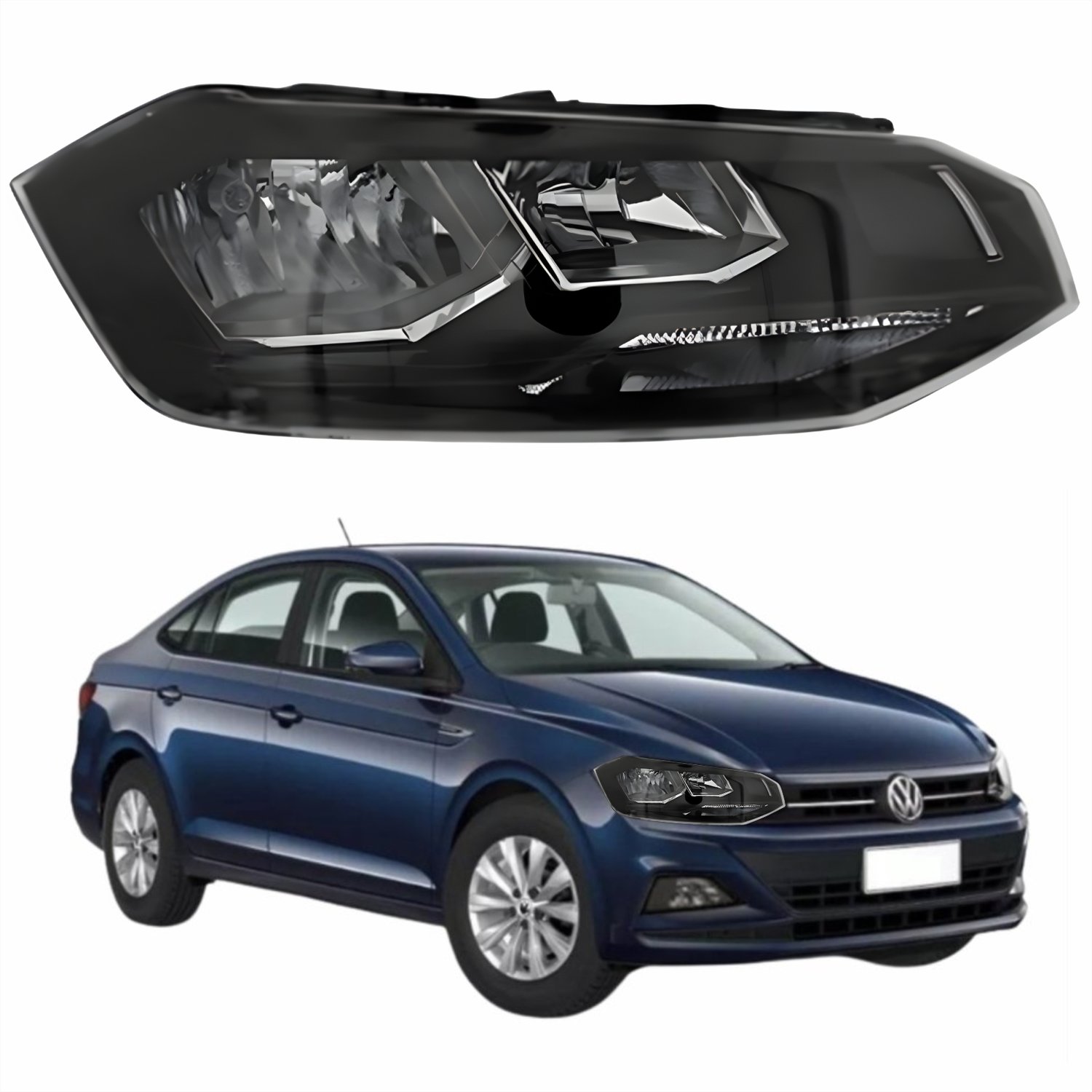 Farol Vw Polo Virtus 2018 Até 2022 Máscara Negra Com Friso Preto Lado Direito PassageiroLado: Único