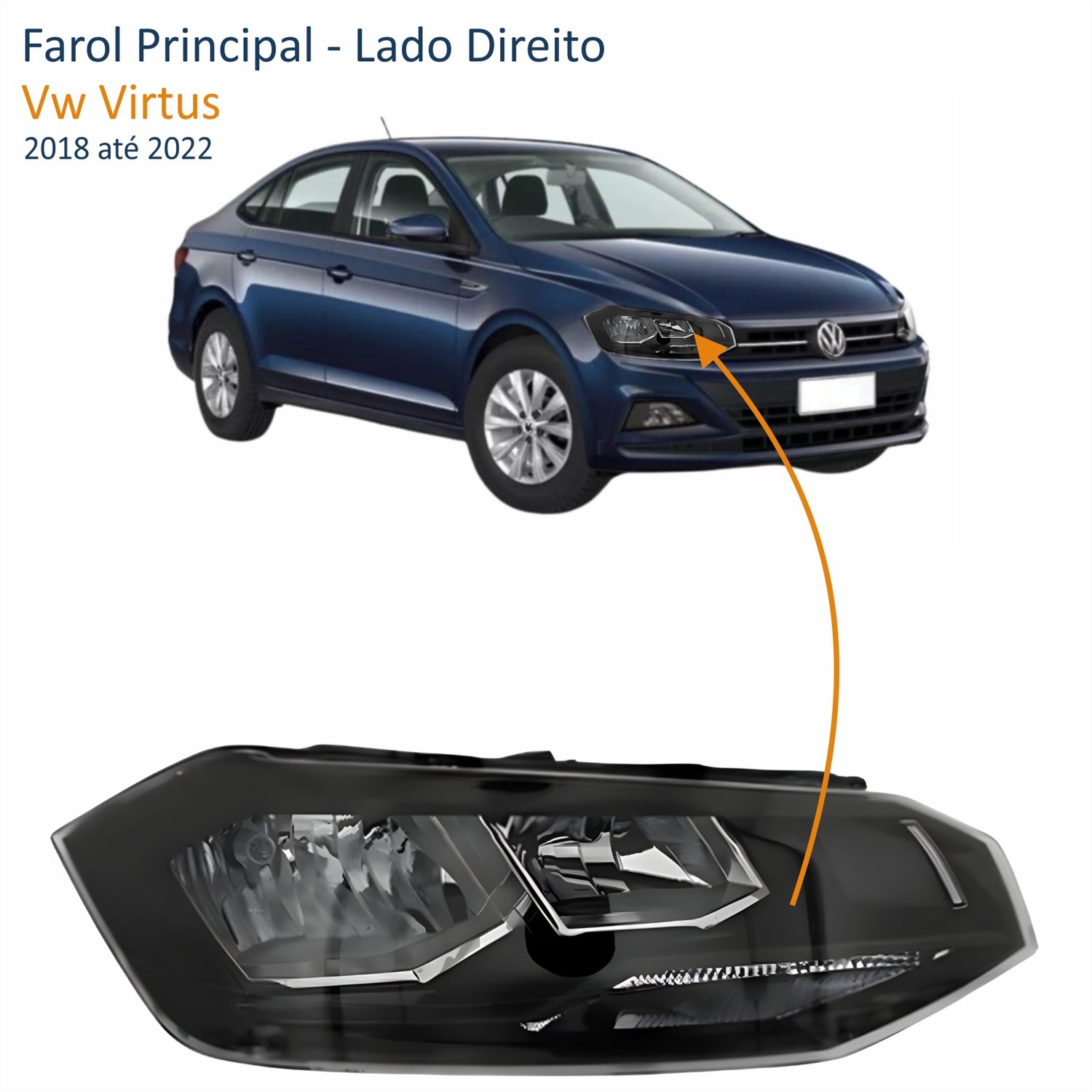 Farol Vw Virtus 2018 Até 2022 Máscara Negra Com Friso Preto Lado Direito Passageiro