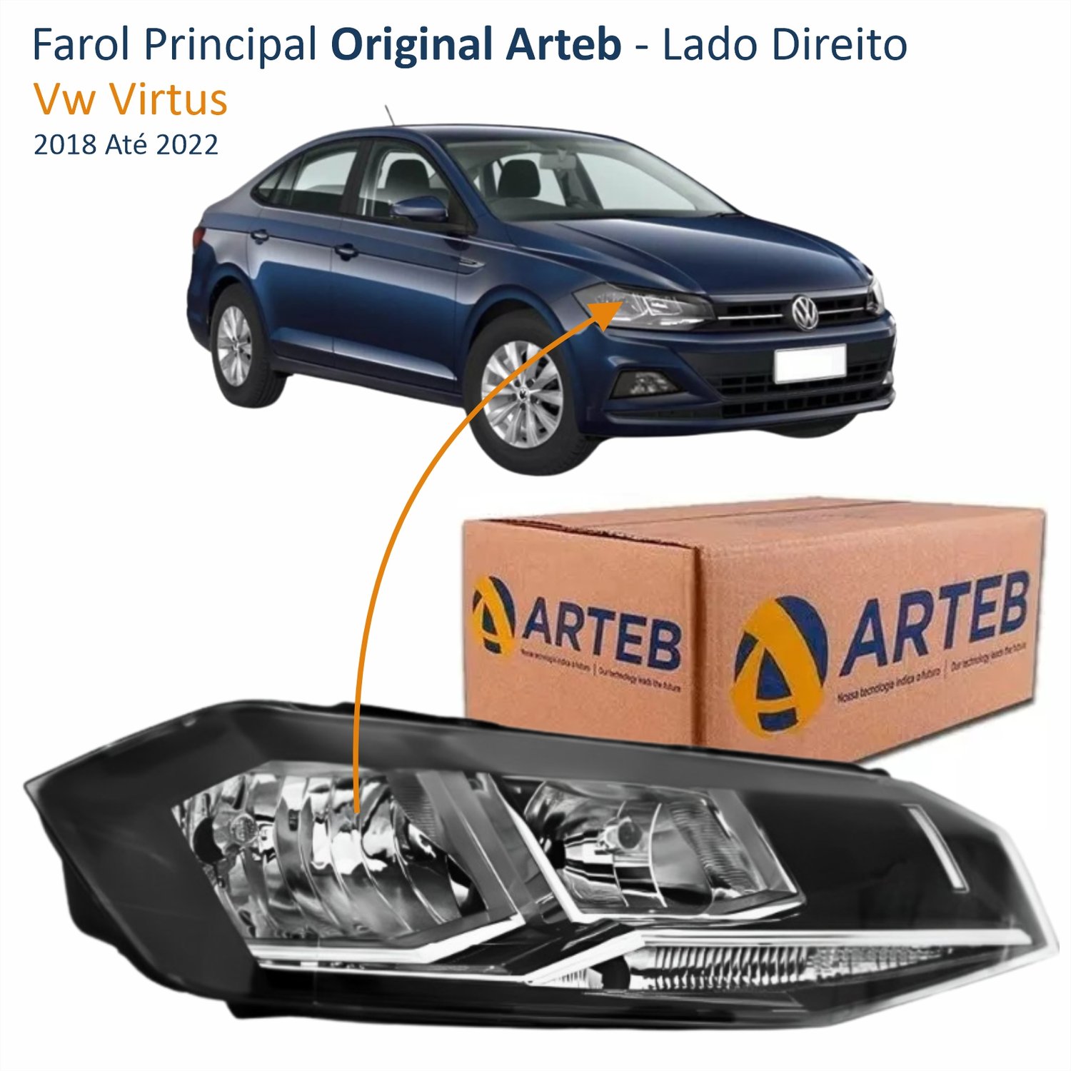 Farol Vw Virtus 2018 Até 2022 Original Arteb Máscara Negra Com Friso Cromado Lado Direito Passageiro