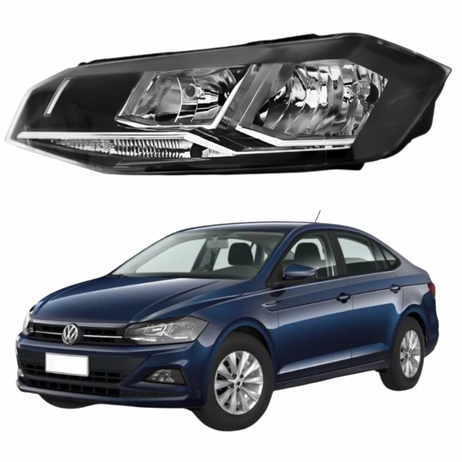 Farol Vw Polo Virtus 2018 Até 2022 Original Arteb Máscara Negra Com Friso Cromado Lado Esquerdo Motorista Quant: 1x