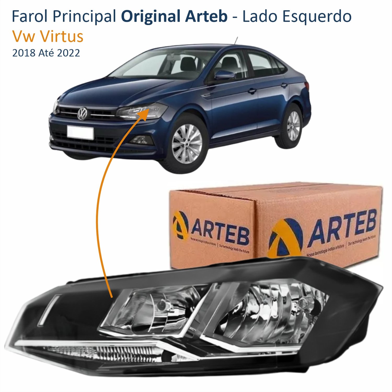 Farol Vw Virtus 2018 Até 2022 Original Arteb Máscara Negra Com Friso Cromado Lado Esquerdo Motorista