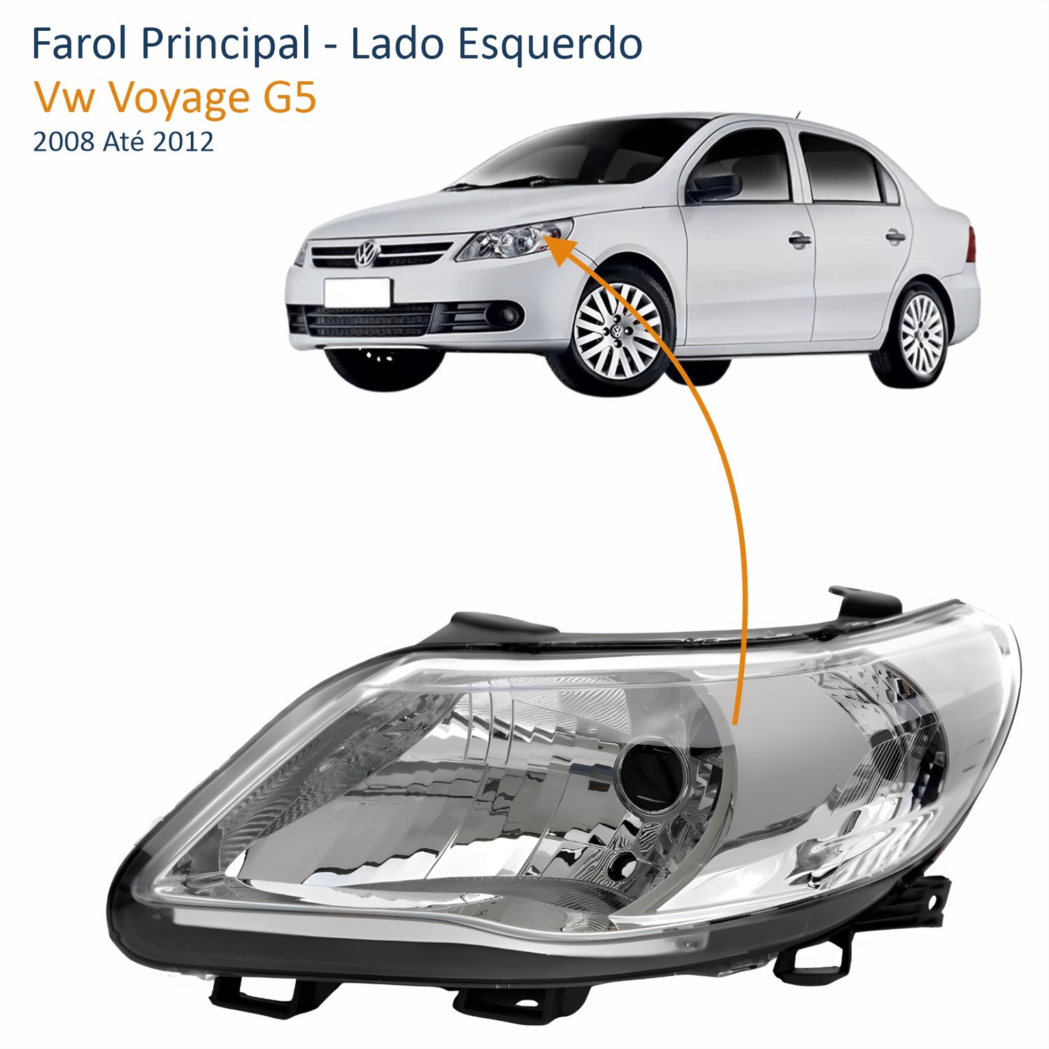 Farol Vw Voyage G5 2008 Até 2012 Máscara Cromada Lado Esquerdo Motorista