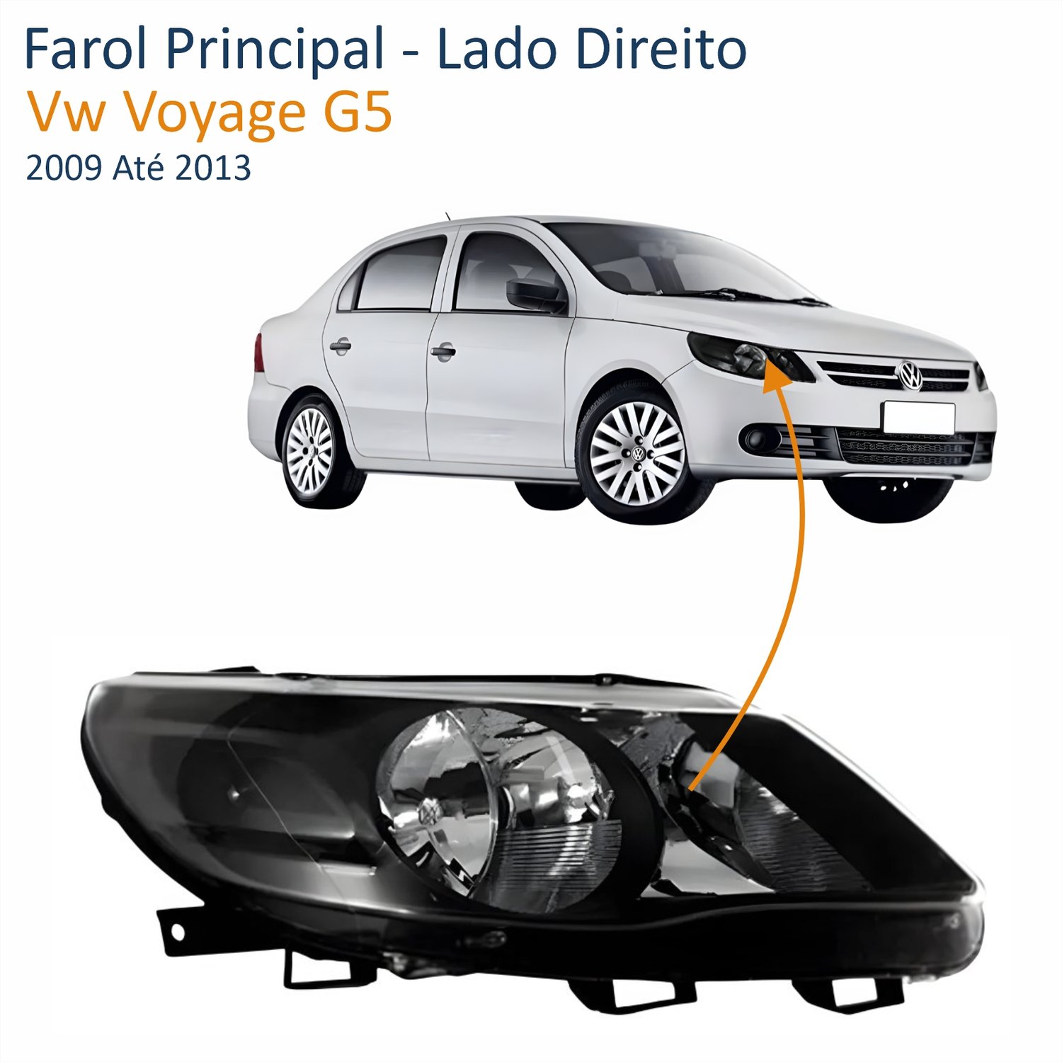 Farol Vw Gol Voyage G5 2009 Até 2013 Saveiro G5 2010 Até 2013 Máscara Negra Lado Direito PassageiroLado: Único