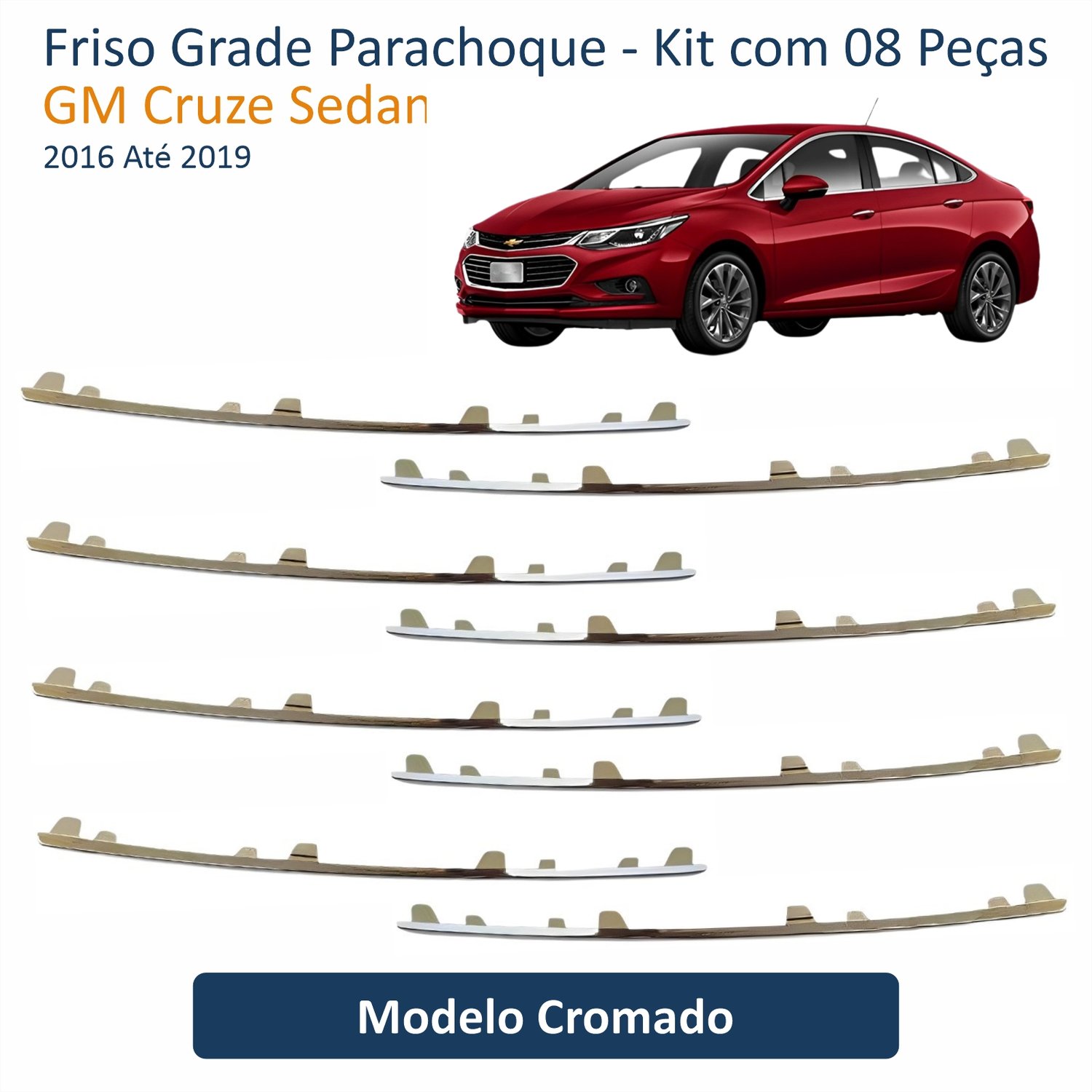 Friso Grade Parachoque GM Cruze Sedan LTZ 2016 Até 2019 Cromado Kit com 8 Peças