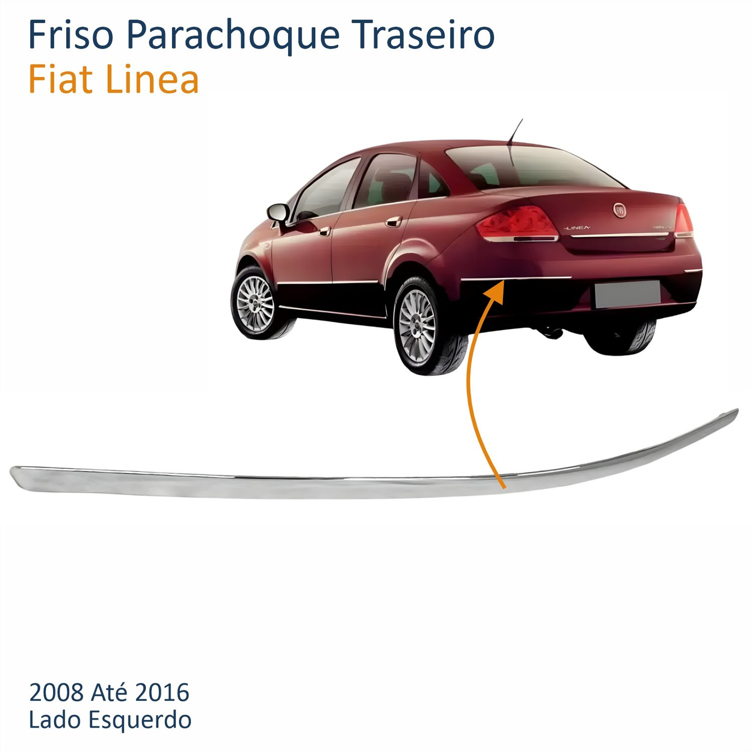 Friso Parachoque Traseiro Fiat Linea 2008 Até 2016 Cromado Lado Esquerdo Motorista