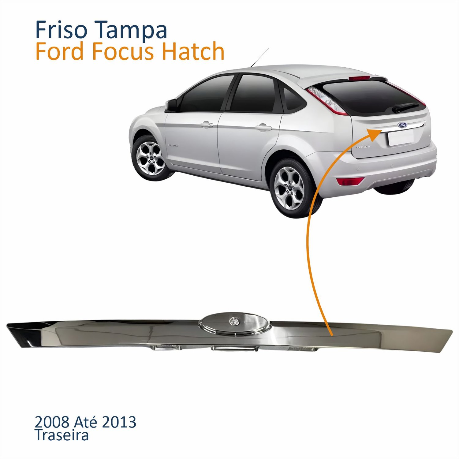 Friso Tampa Traseira Ford Focus Hatch 2008 Até 2013 Cromado