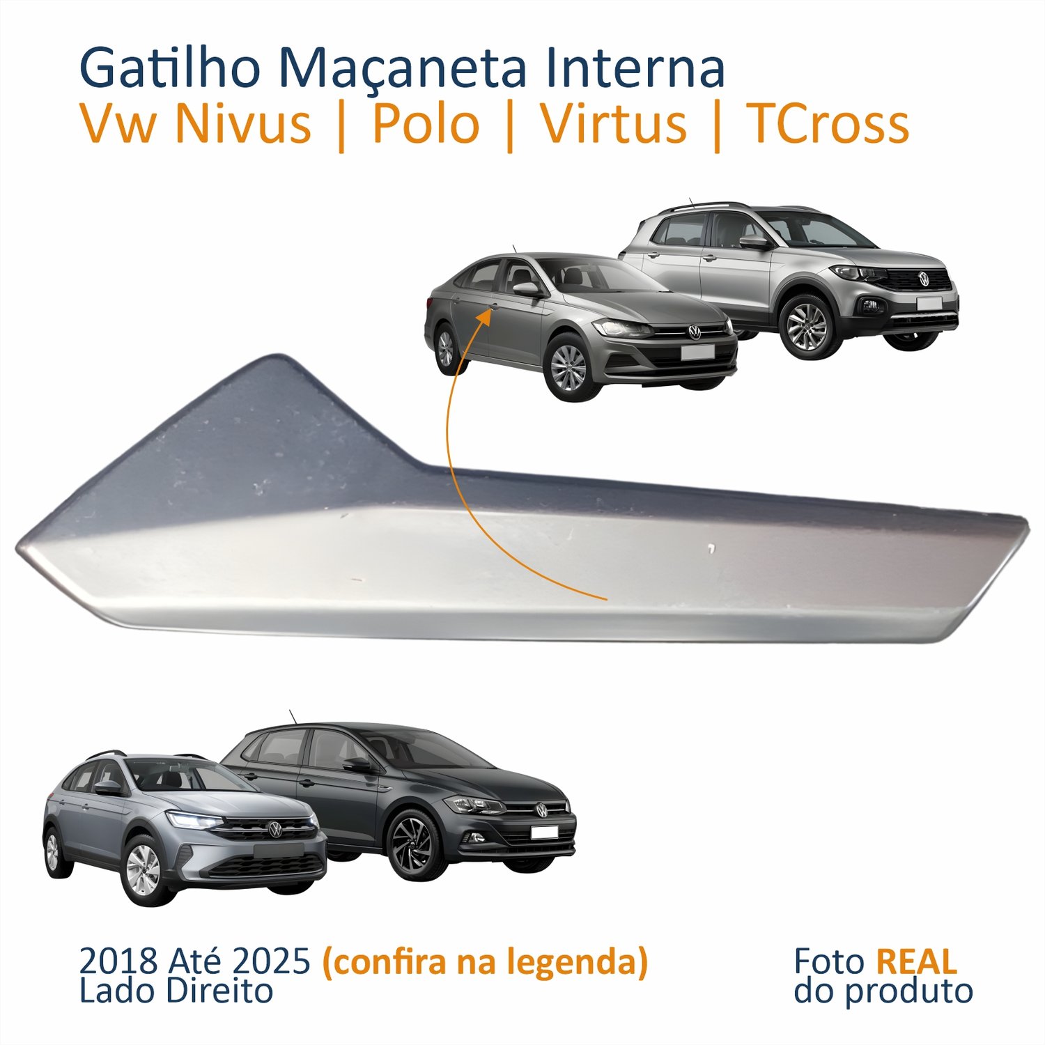 Gatilho Maçaneta Interior Vw Polo Virtus 2018 Até 2025 T-Cross 2019 Até 2025 Nivus 2020 Até 2025 Lado Direito
