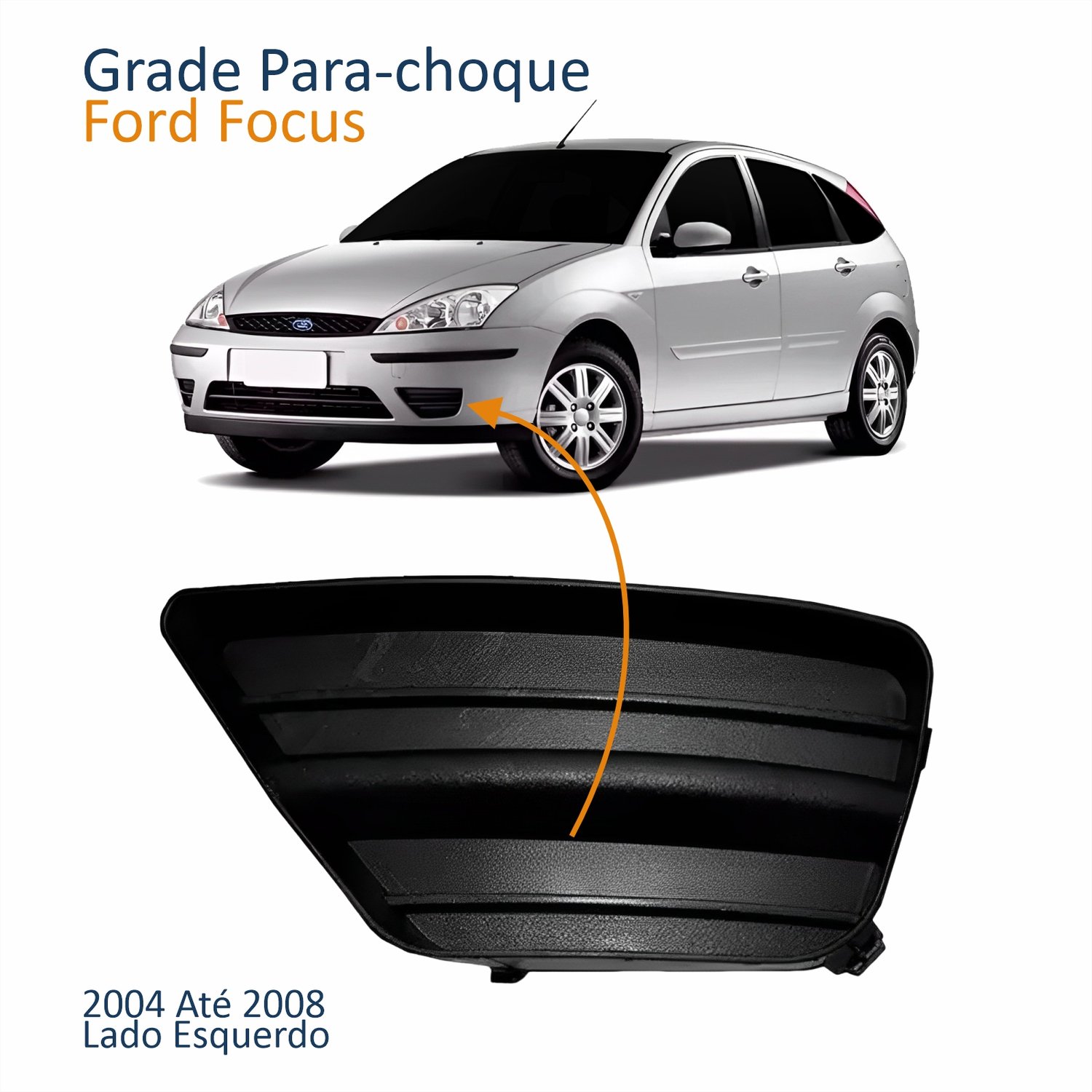 Grade Para-choque Ford Focus 2004 2005 2006 2007 2008 Sem Furo Lado Esquerdo Motorista