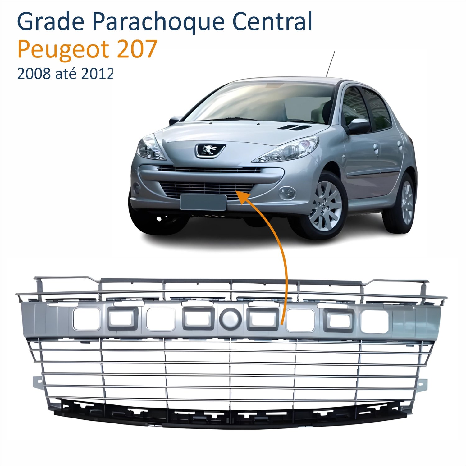 Grade Parachoque Central Peugeot 207 2008 Até 2012 Cinza