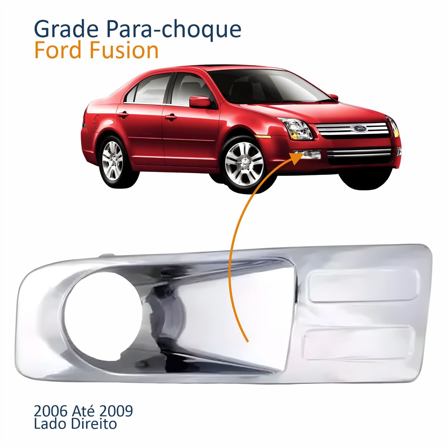 Grade Parachoque Dianteiro Ford Fusion 2006 2007 2008 2009 Cromado Lado Direito Passageiro