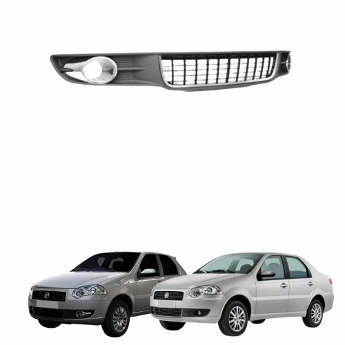 Grade Parachoque Fiat Palio G4 Siena 2008 até 2012 com Furo com Aro Cromado Cinza