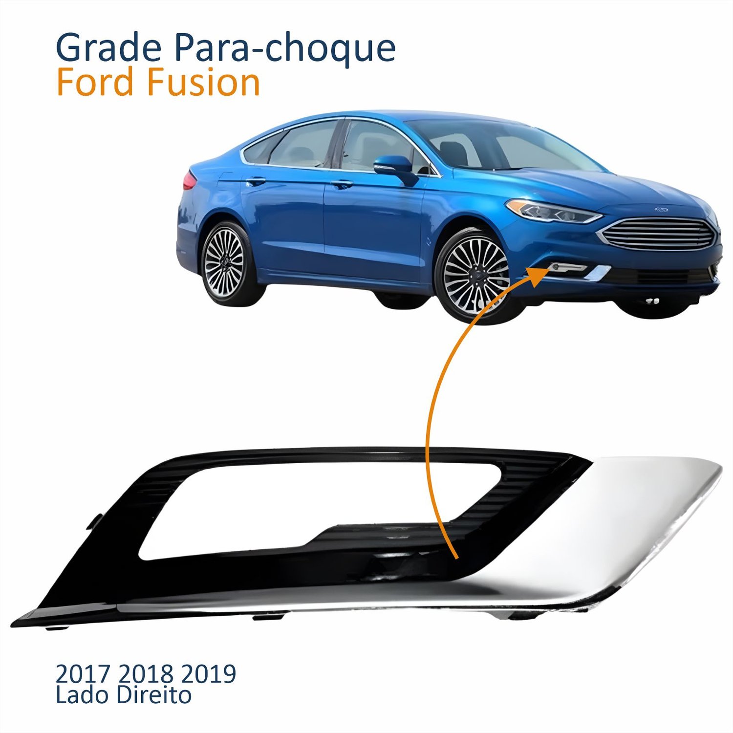 Grade Parachoque Ford Fusion 2017 2018 2019 Com Friso Cromado Lado Direito Passageiro
