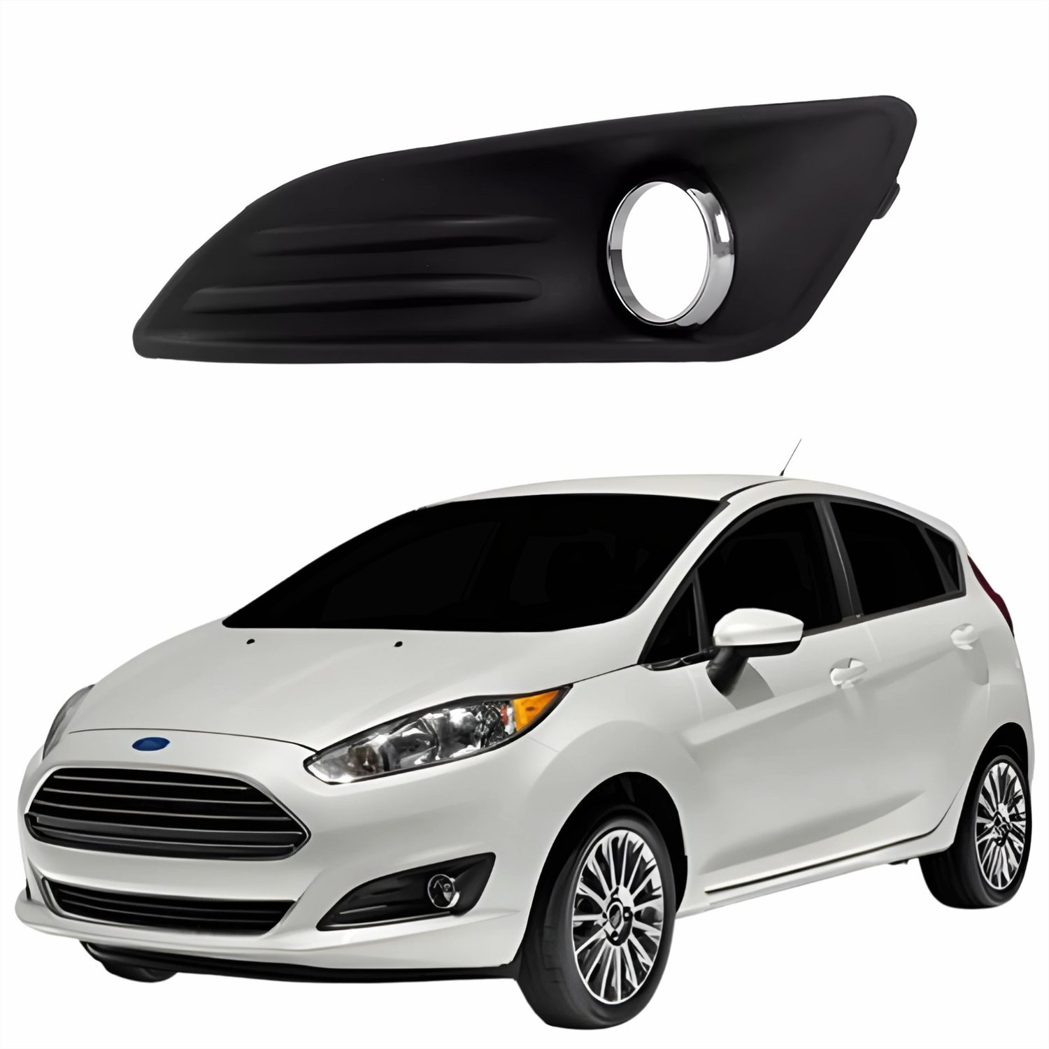 Grade Parachoque Ford New Fiesta 2014 2015 2016 2017 2018 Aro Cromado Com Furo Lado Esquerdo Motorista