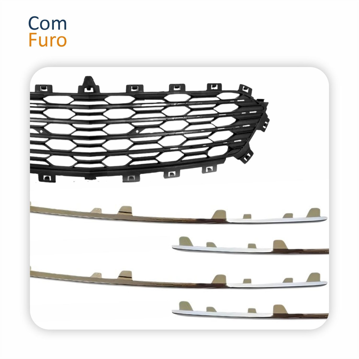 Grade Central Parachoque GM Cruze Sedan LTZ 2016 a 2019 Com Furo FrisoTamanho: ÚnicoFriso Grade Parachoque GM Cruze Sedan LTZ 2016 Até 2019 Cromado Kit com 8 PeçasTamanho: Único