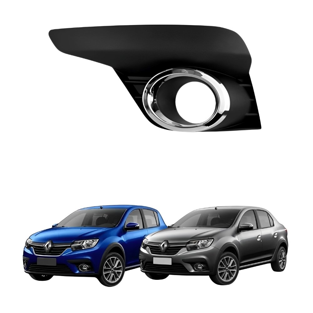 Grade Parachoque Renault Logan Sandero 2020 Até 2022 Com Furo Com Moldura Cromada Lado Esquerdo Motorista