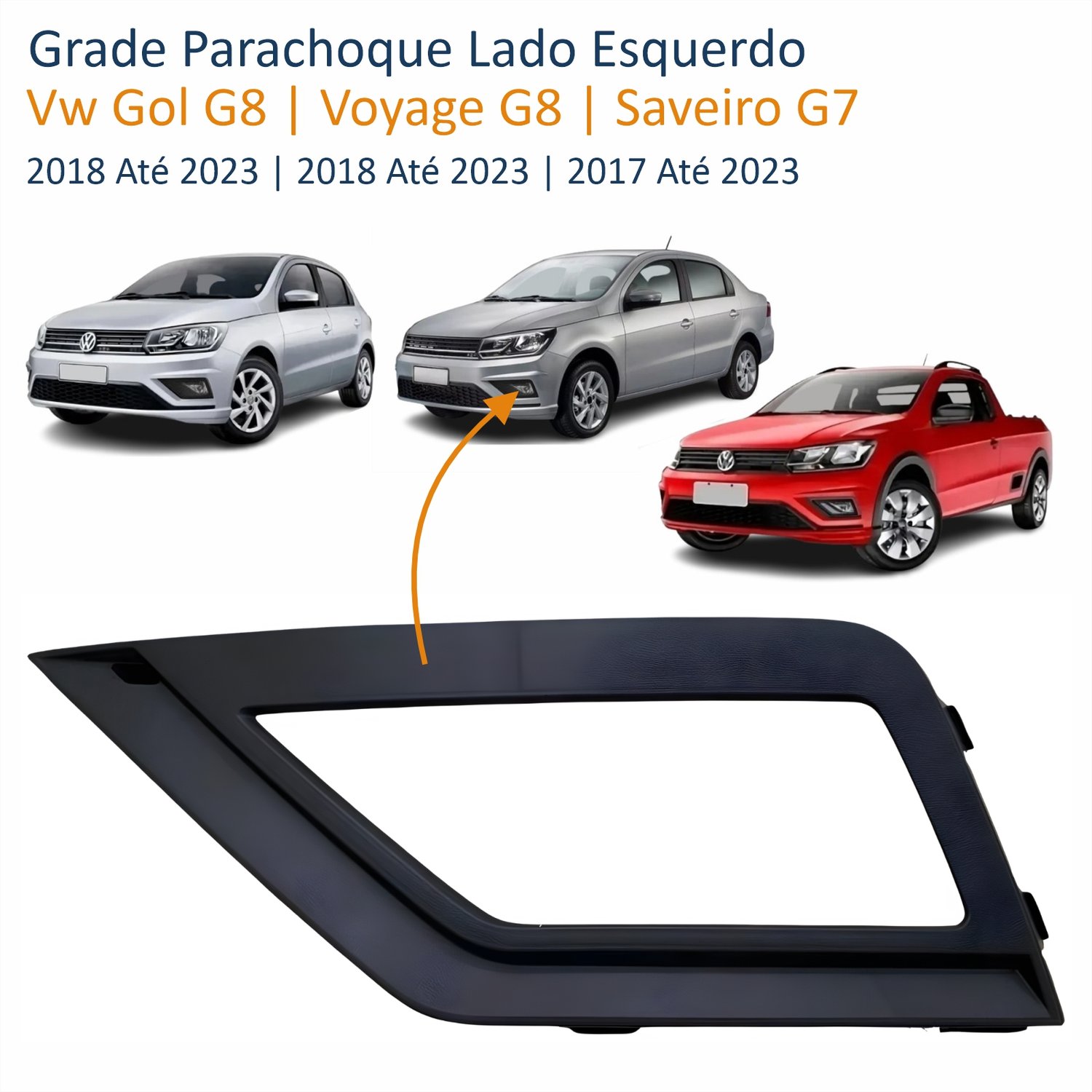 Grade Parachoque Vw Gol Voyage G8 Saveiro G7 2017 Até 2023 Com Furo Lado Esquerdo Motorista