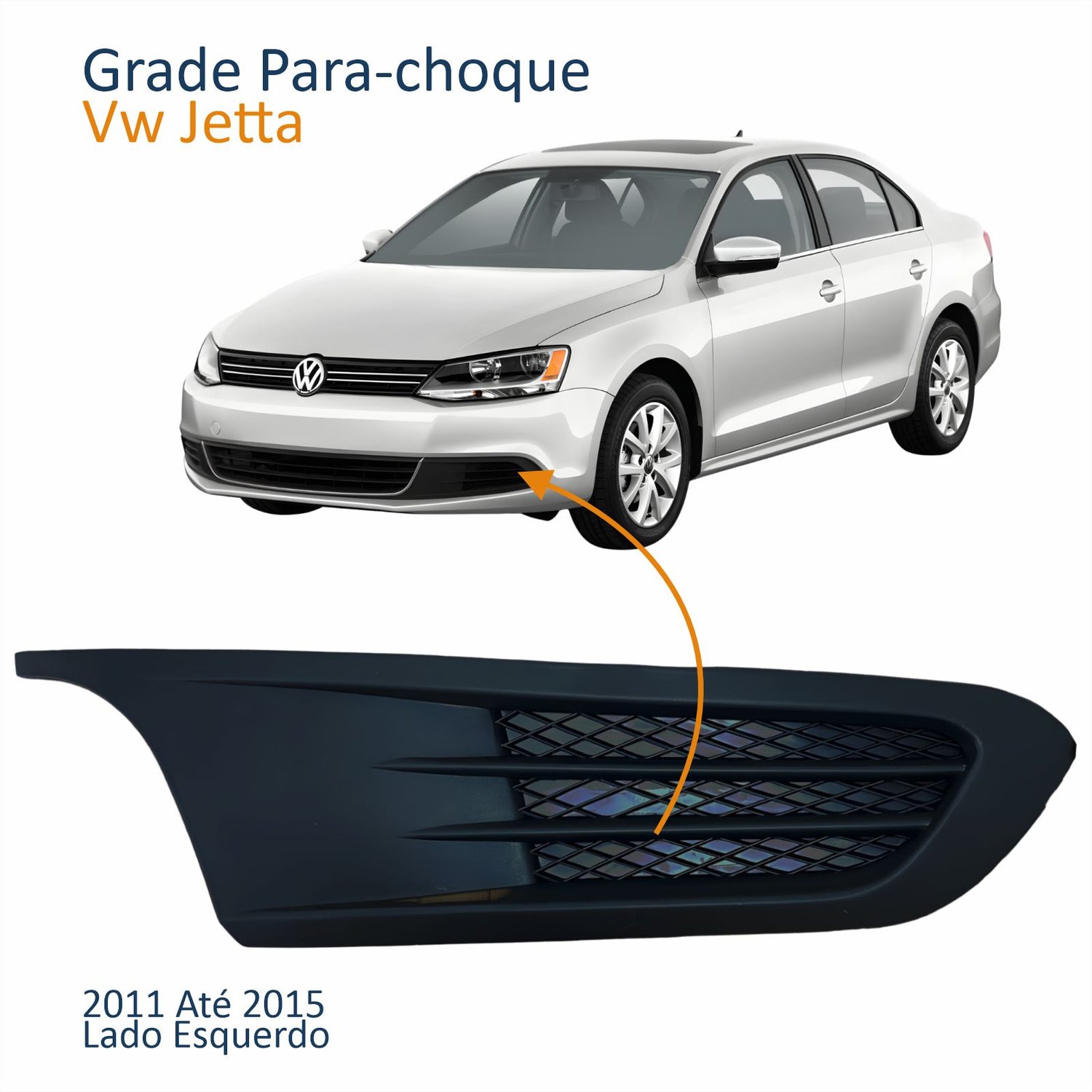 Grade Parachoque Vw Jetta 2011 2012 2013 2014 2015 Sem Furo Lado Esquerdo Motorista