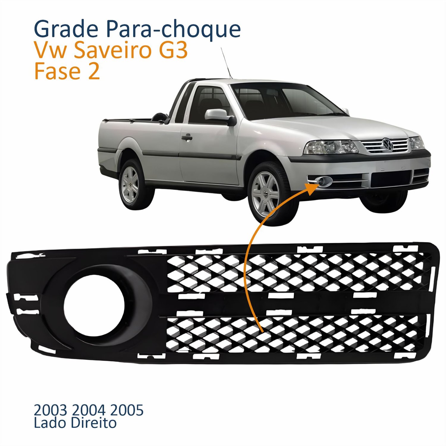 Grade Parachoque Vw Saveiro G3 2003 2004 2005 Com Furo Fase 2 Lado Direito Passageiro